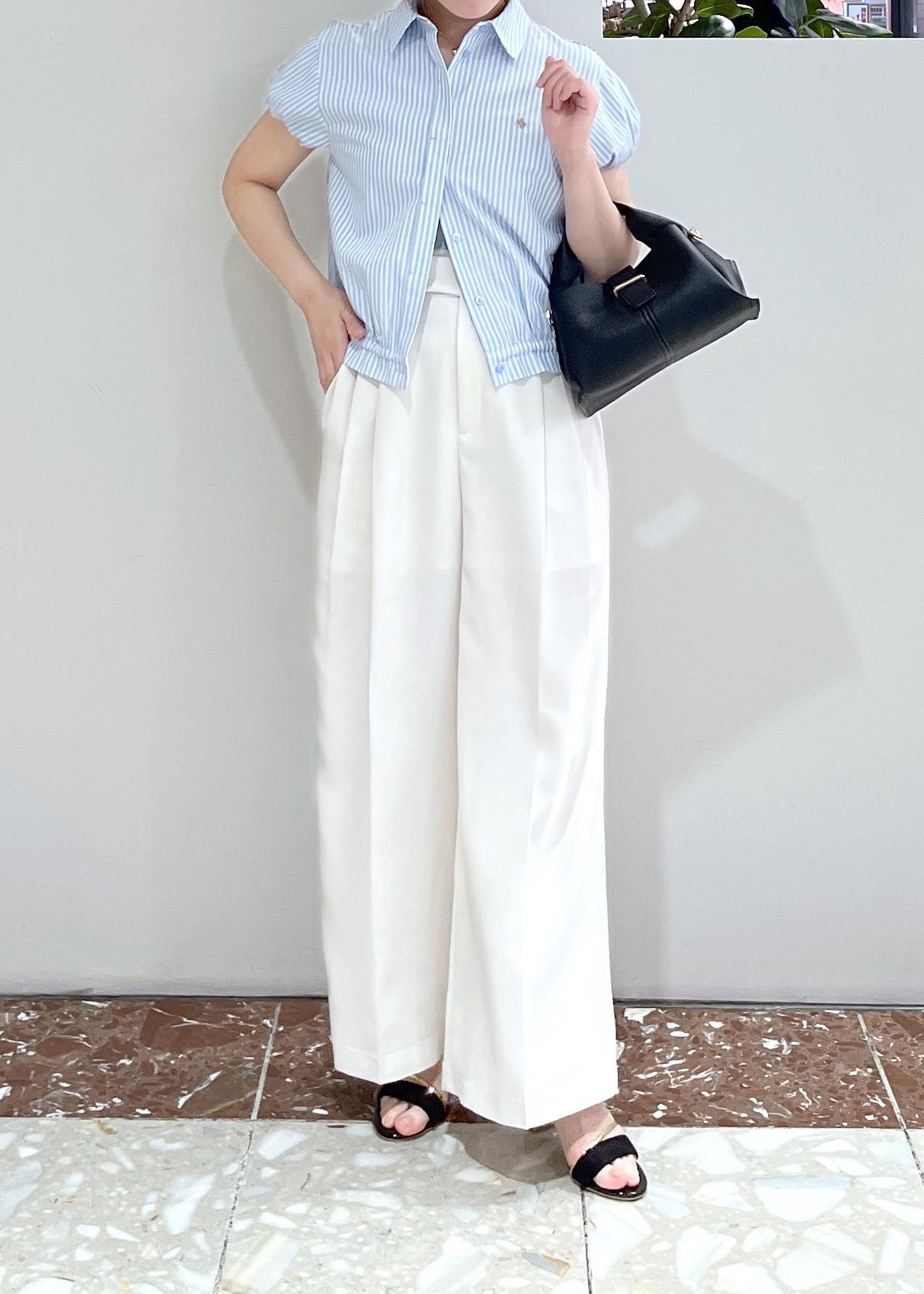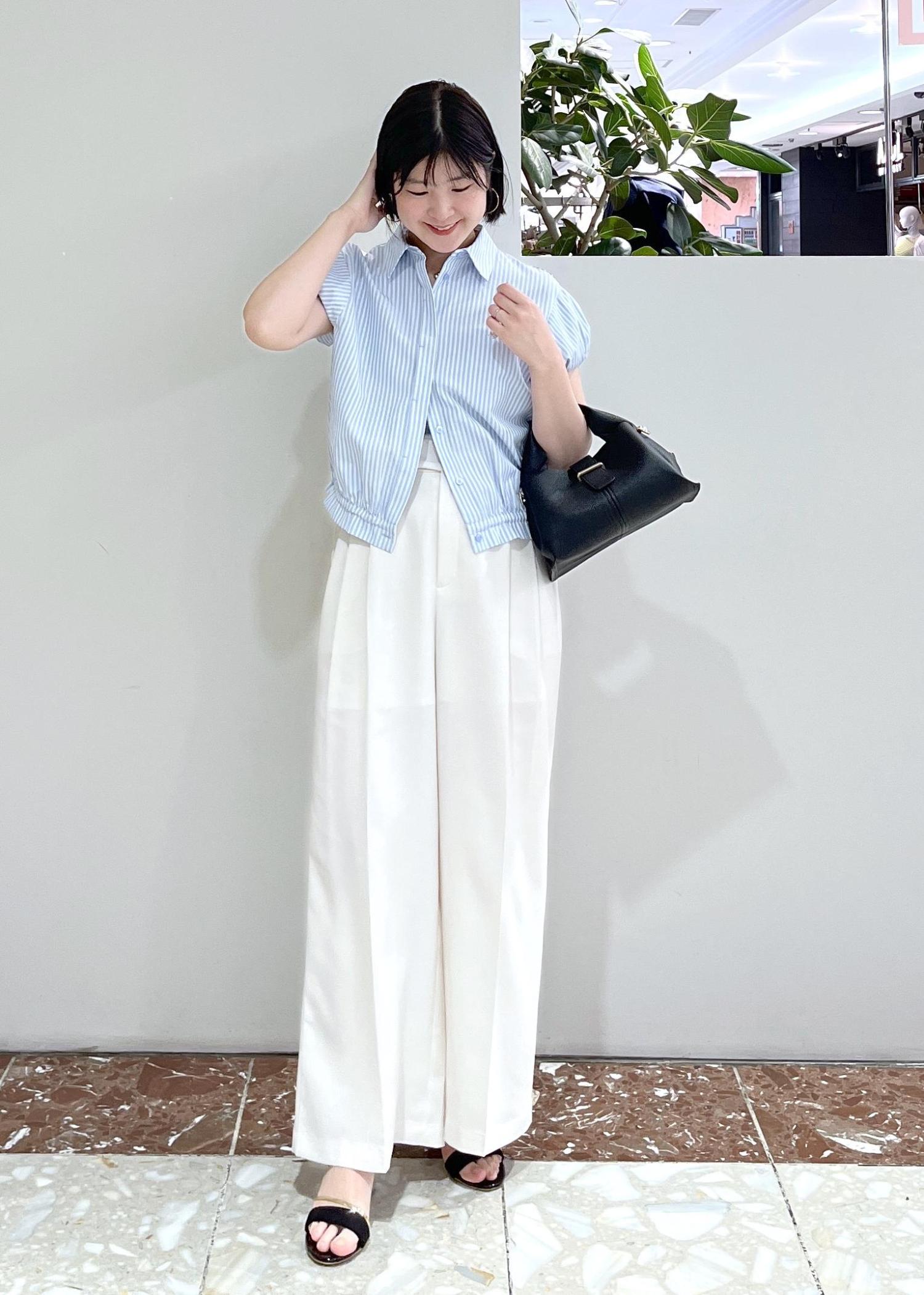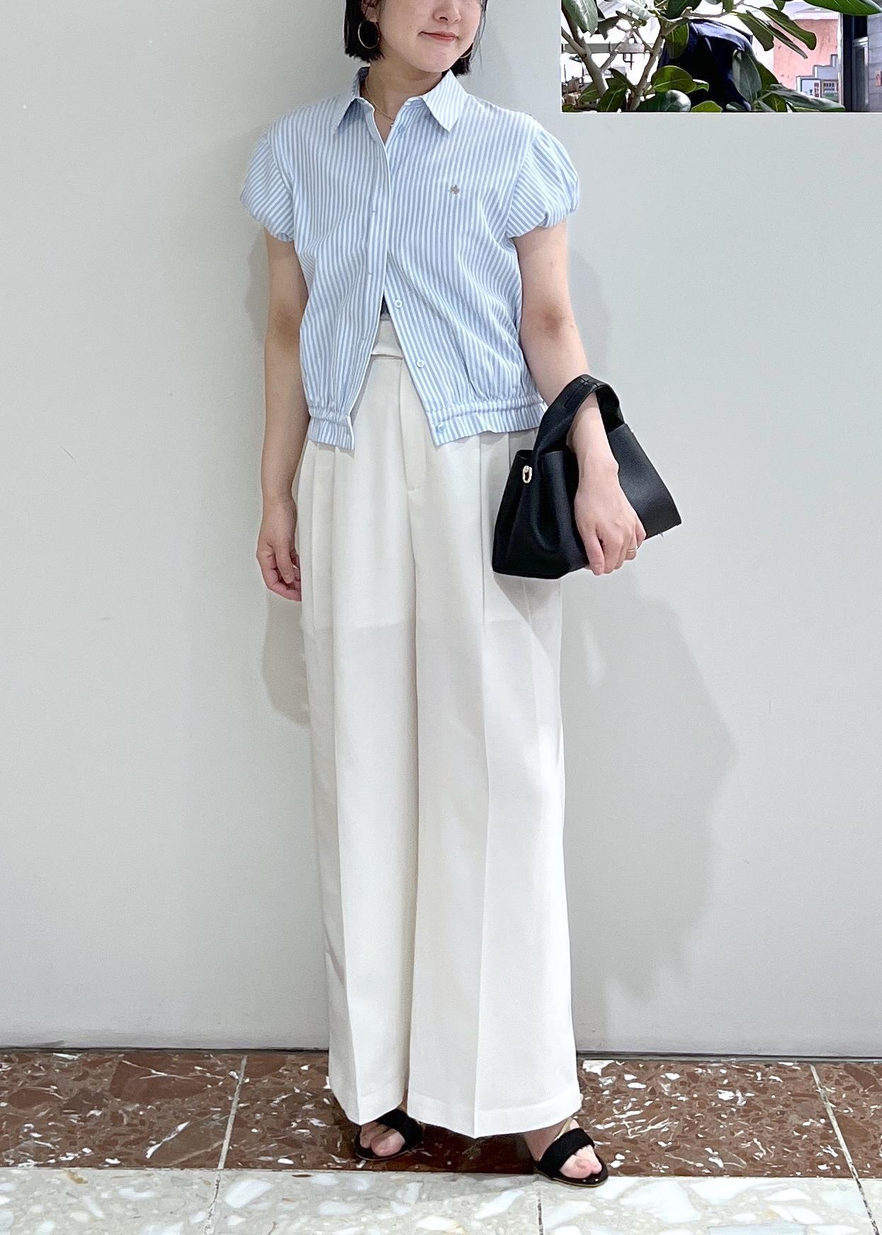 ジャストウエストなのでワイドボトムに相性ぴったりです。 -