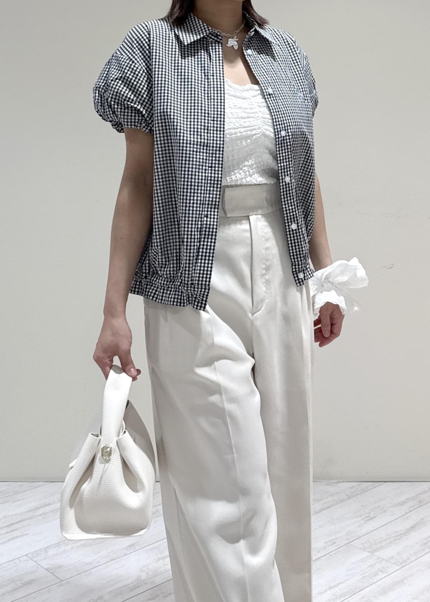 腕回りをカバーしてくれるフレンチスリーブのバルーン袖が可愛らしいシャツです◎