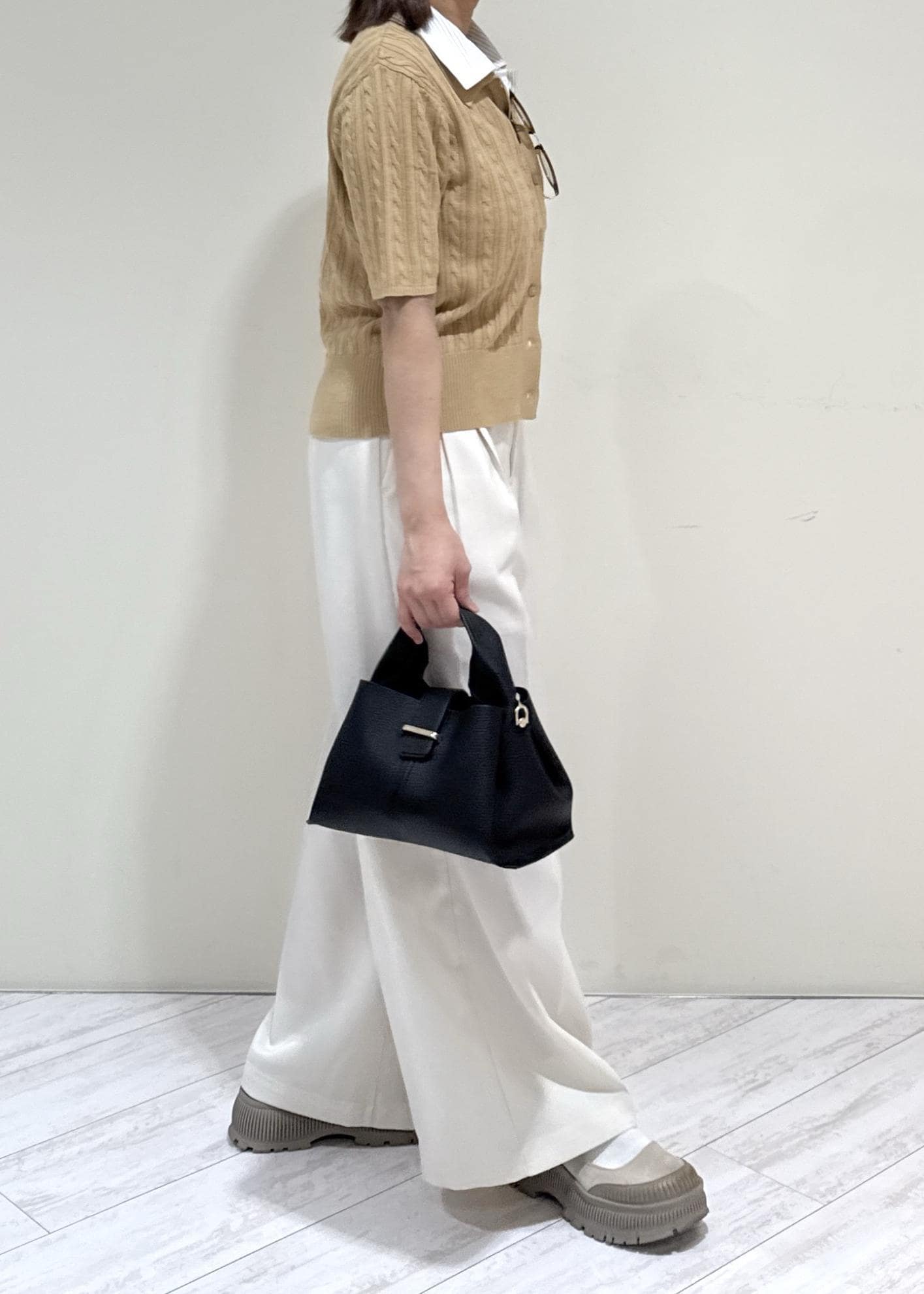 コロンとしたフォルムが可愛らしいバッグですが、キレイめにも使えるデザインなので色々なコーディネートに合わせられます! -