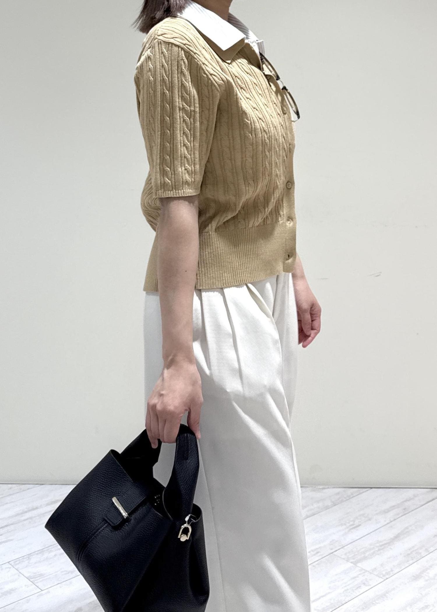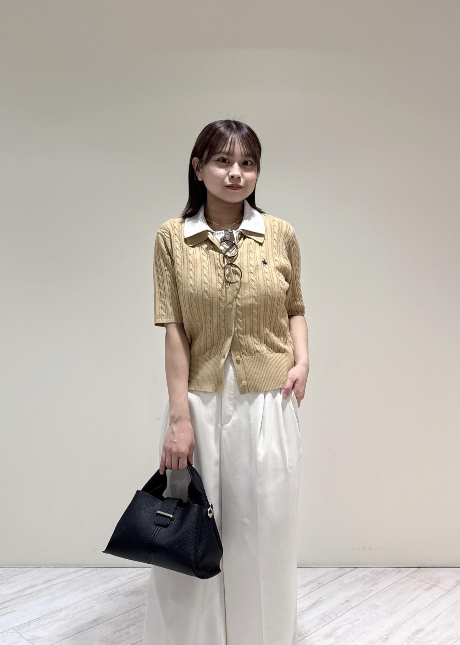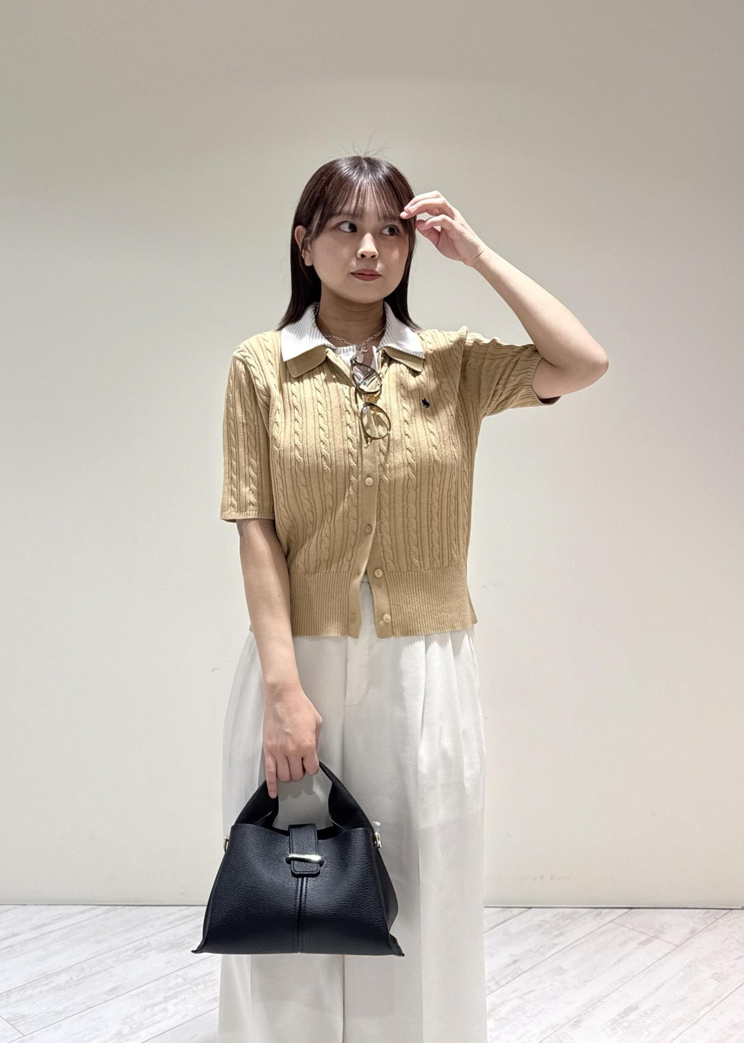 VIS【POLO BCS】VIS別注ケーブルドッキング衿付きカーディガンベージュ / F¥7,700レビューコンパクトめでフィット感がありますが、ピッタリしすぎずスッキリ見えするサイズです◎