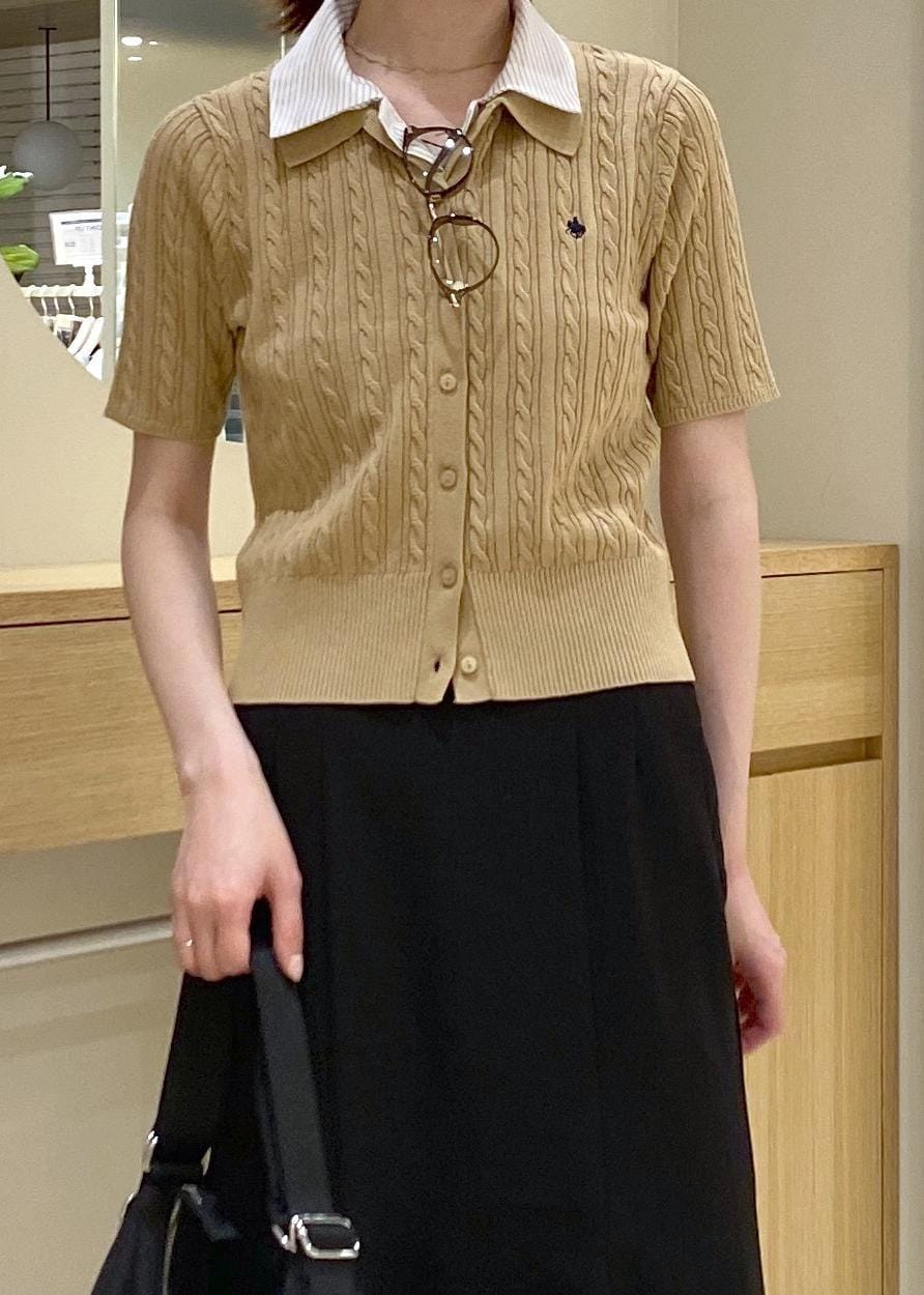 VIS【POLO BCS】VIS別注ケーブルドッキング衿付きカーディガンベージュ / F¥7,700レビューPOLO BCS別注アイテム、えり付きカーディガンです!