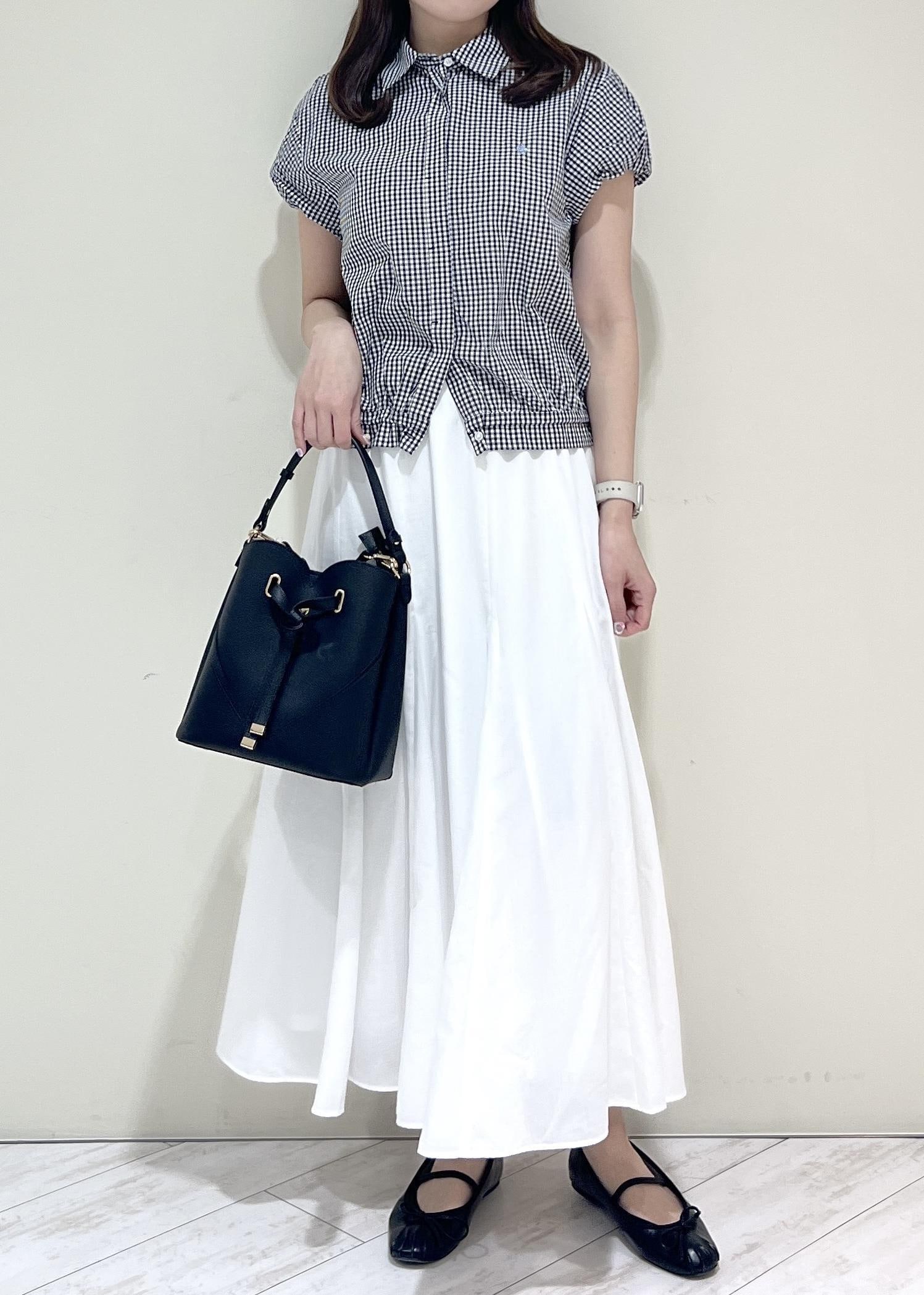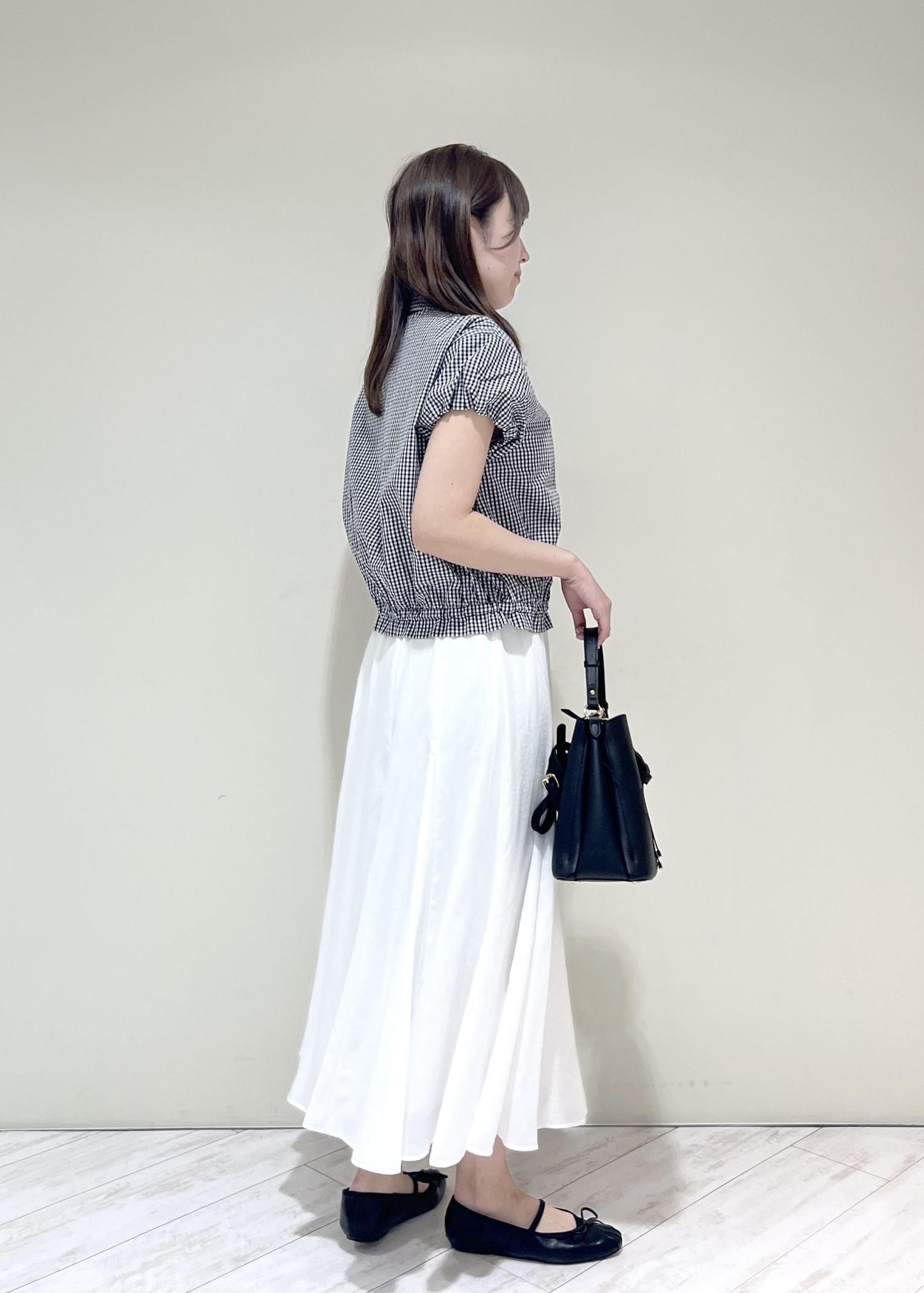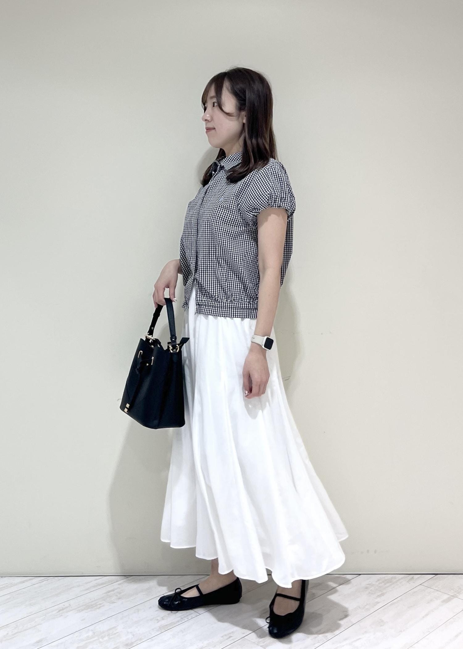 VIS気流染めフレアースカート/イージーケアオフホワイト / F¥6,589レビュー生地感は柔らかく、ウエストはゴムなで楽に着られます!くるぶし上にくる着丈なのでぺたんこ靴を履いてもバランス良く合わせられました◎