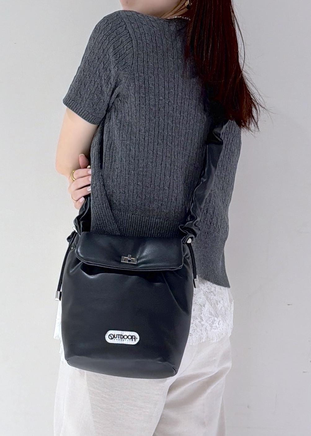 予約VIS新色追加【OUTDOOR PRODUCTS】VIS別注ドロストミニショルダーバッグブラック系 / F¥6,930レビュー軽い生地で、ハンドル部分が調節可能なのでショルダーにもできます◎