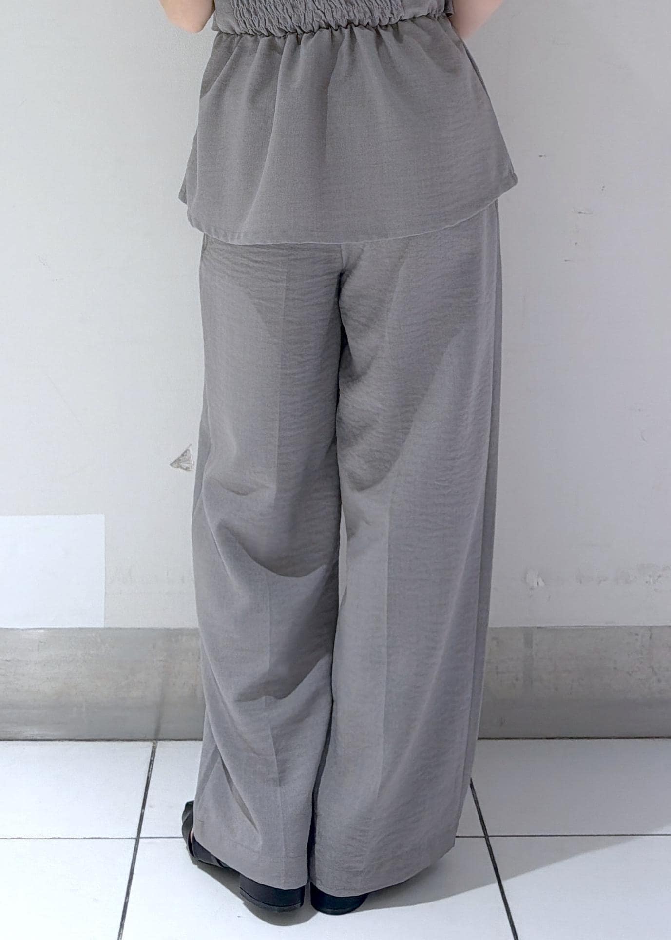 背中の部分にはゴムが入っていて、楽にシルエットがキレイ見えと、腰やお腹周りの体型カバーが叶います◎ -