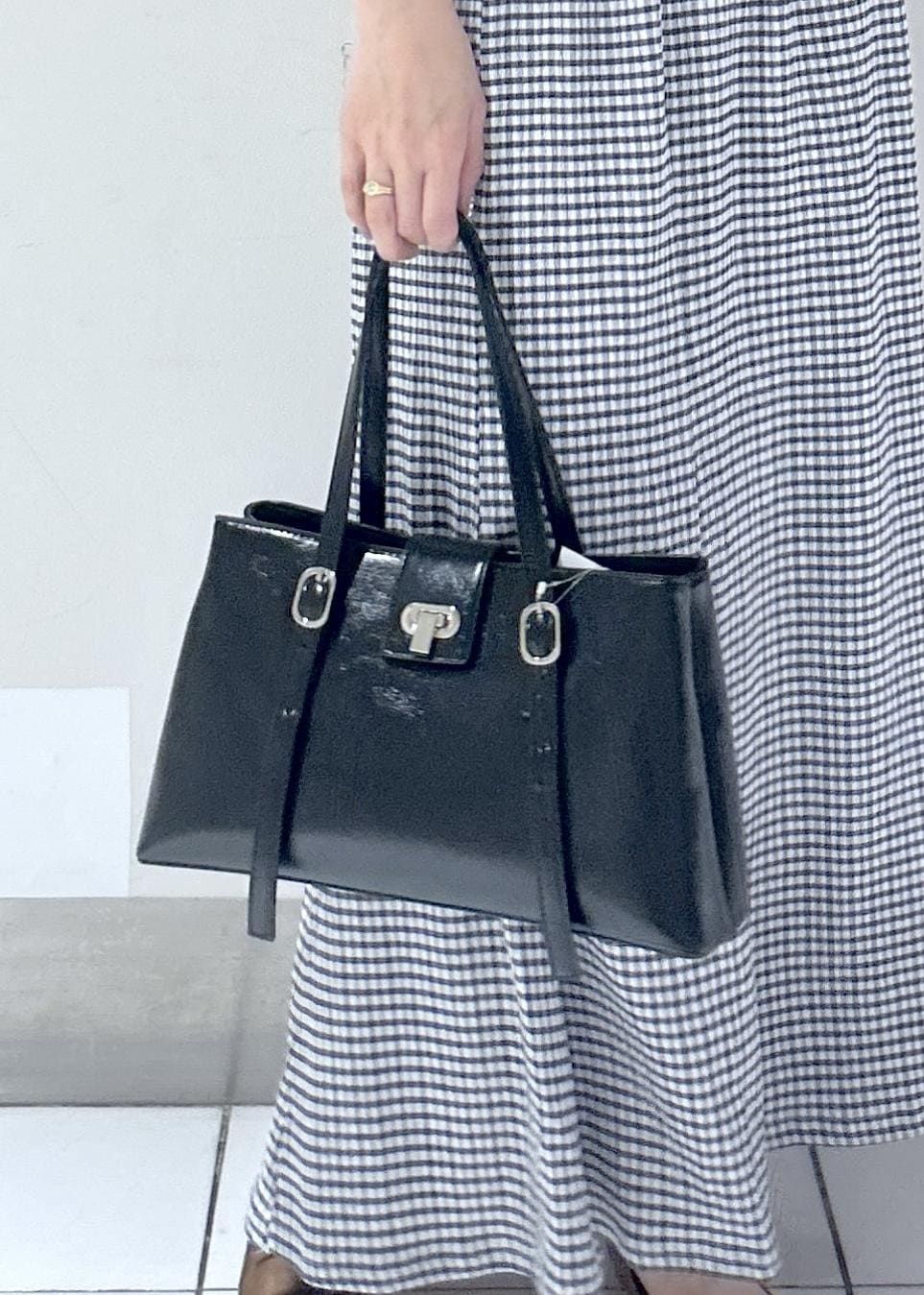 VIS2層ロングハンドルバッグブラック / F¥6,919レビュー長財布、ポーチ、スマートフォンが入るサイズ感。