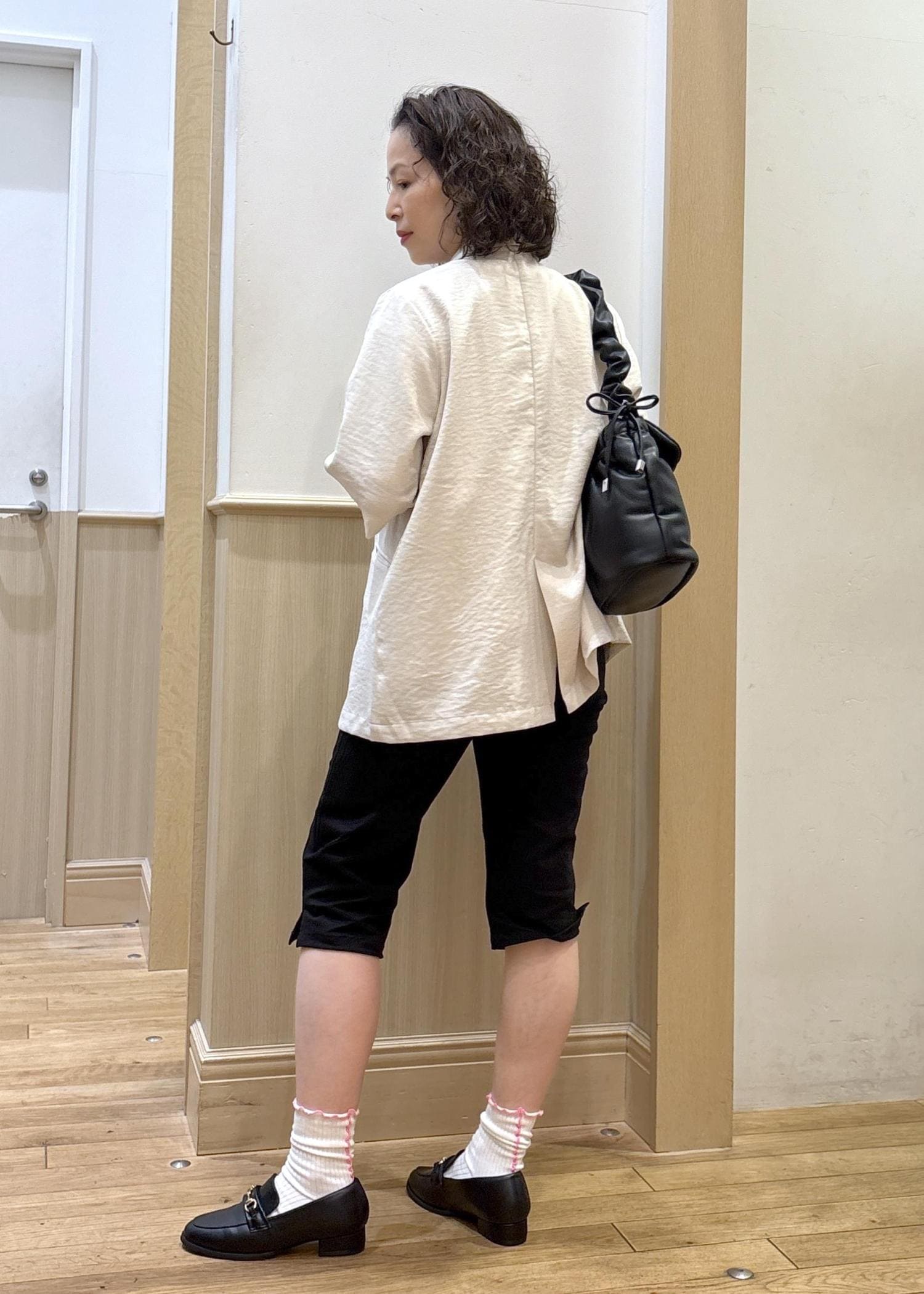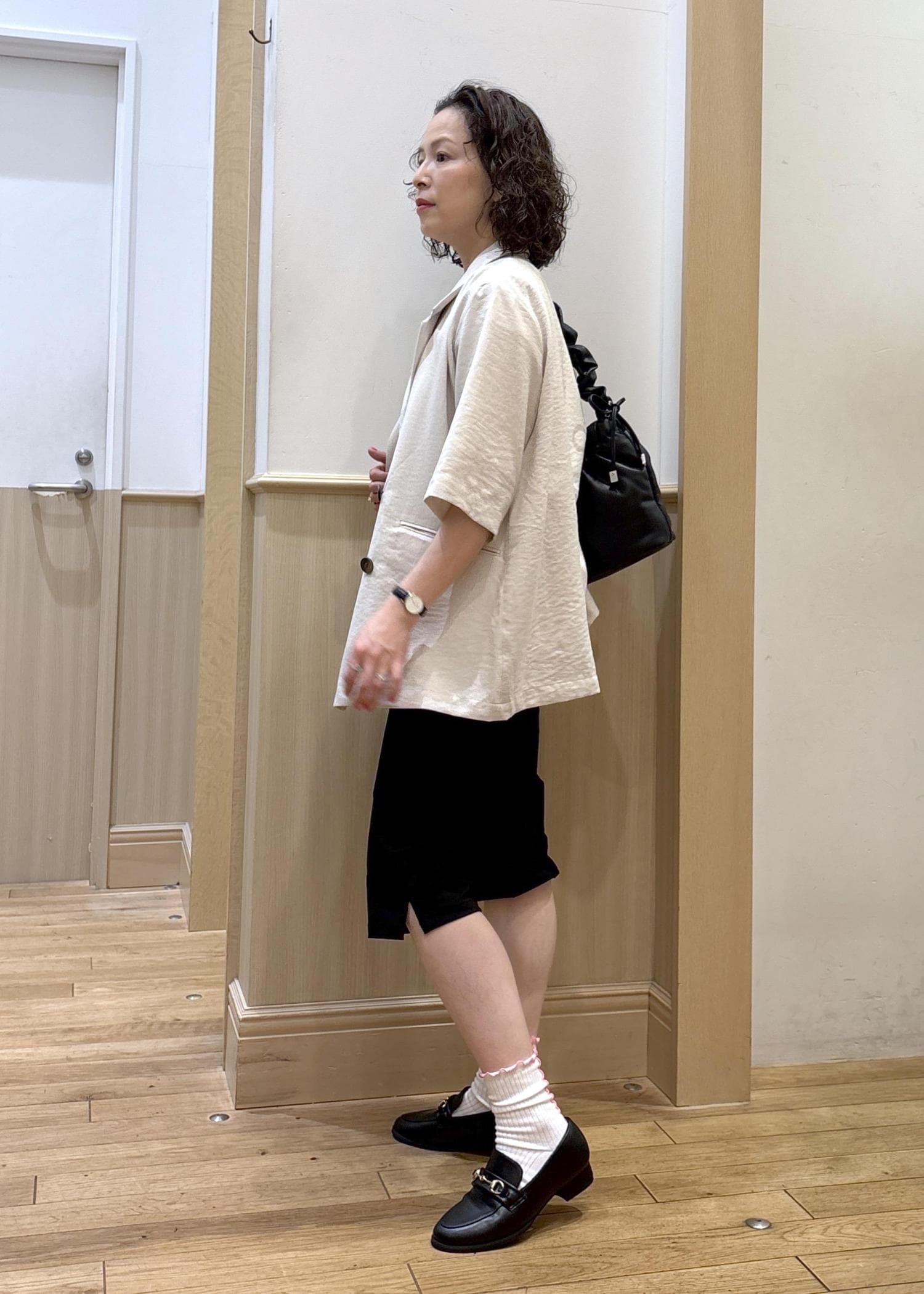 VIS美easyリネンライクハーフスリーブダブルジャケット/接触冷感・セットアップ対応キナリ / S¥7,909レビュー153cmでSサイズ着用でお尻まで隠れる丈感です。