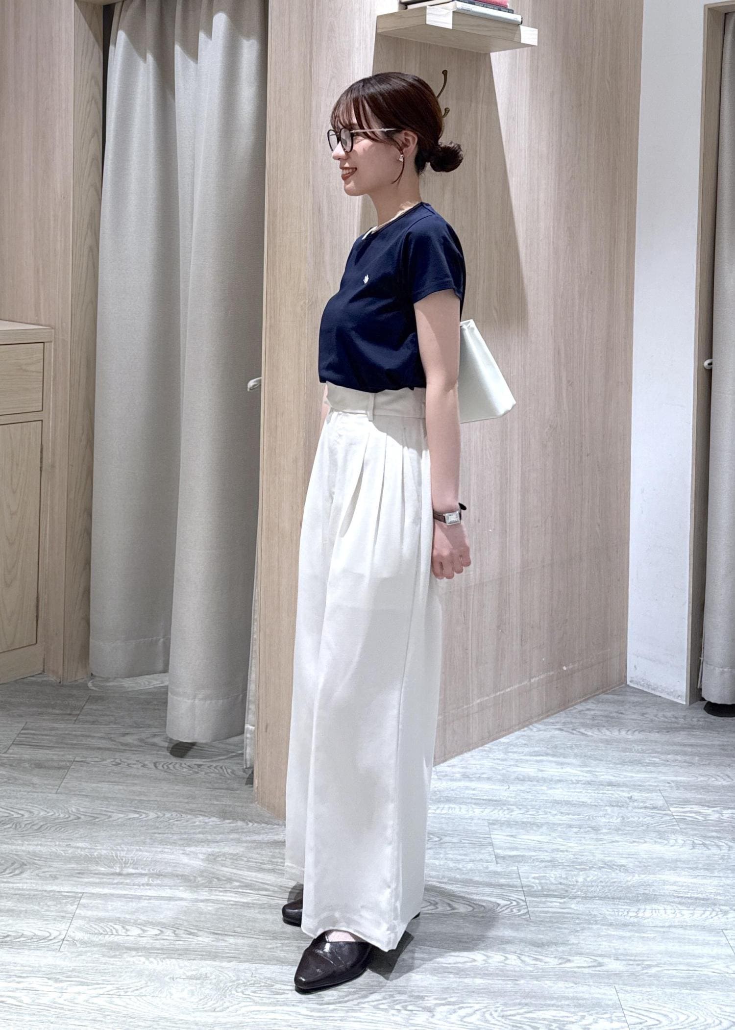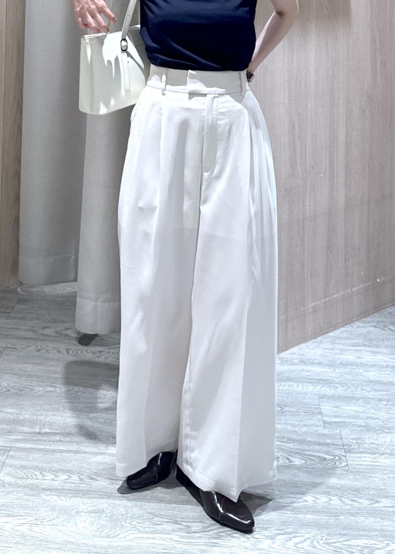 少しハイウエストデザインで、タックが3本も入っているため、ものすごく脚のラインがキレイに見えました!!