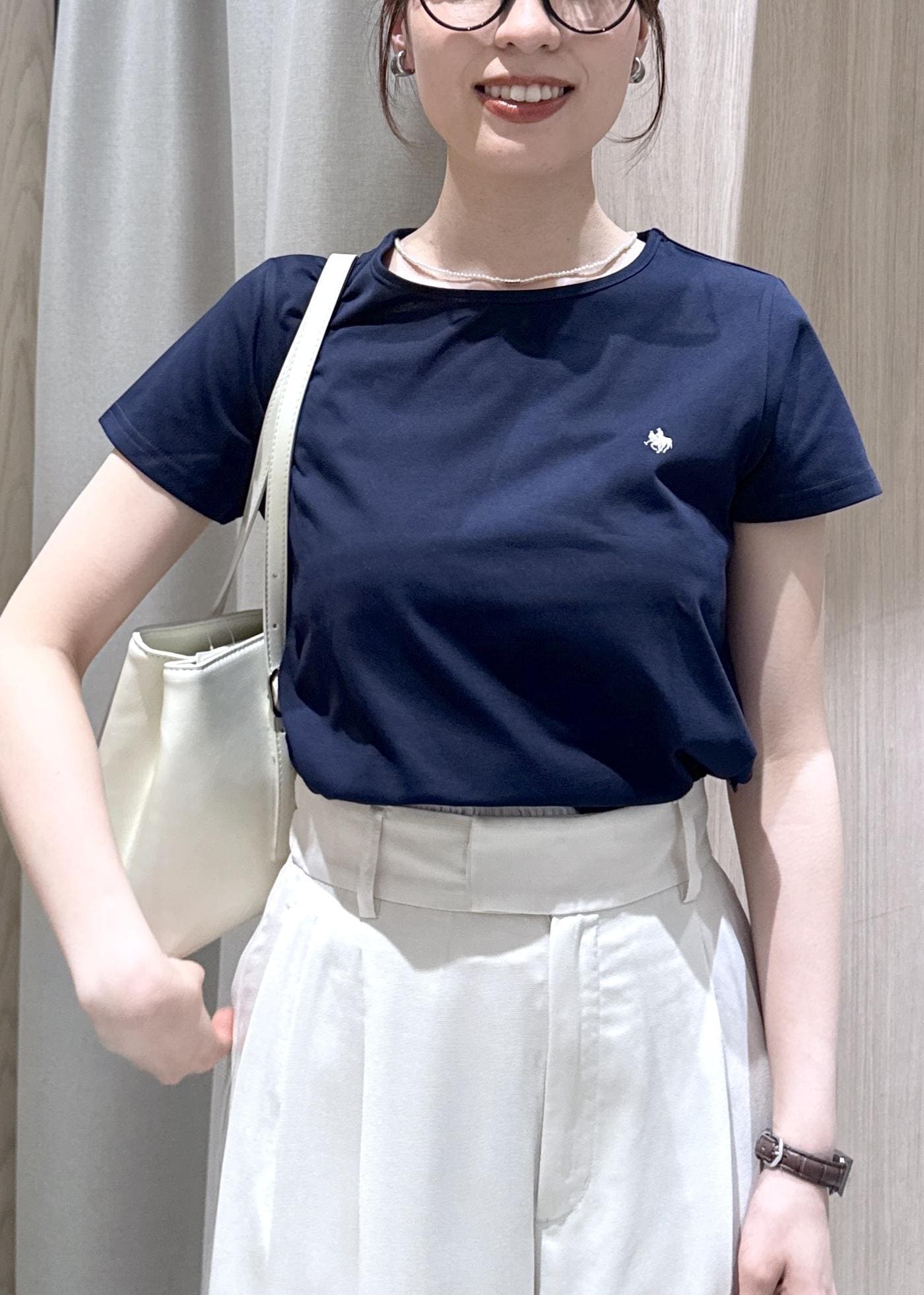 VIS【POLO BCS】VIS別注刺しゅうコンパクトTシャツ/一部WEB限定カラーネイビー / S¥4,950レビュー身長157cm / Sサイズ着用