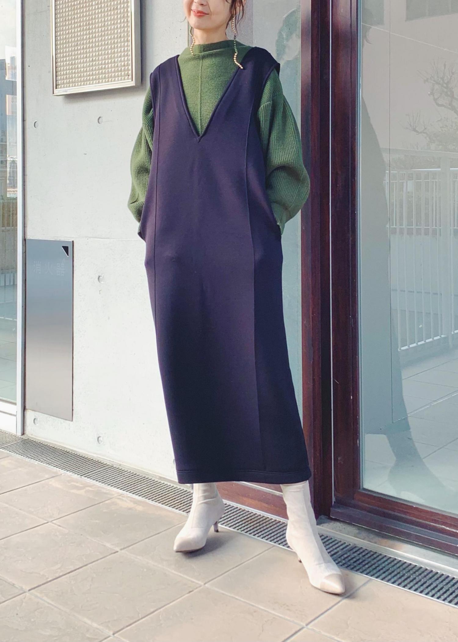 大人気のスフレタッチからジャンパースカートが登場! 立体感があり上品見えなシルエットです。 深Vネックのデザインで女性らしさもあり、 縦ラインが強調されることでスッキリ見えなデザインです。 インナー次第で雰囲気も変わるので、幅広いスタイルを楽しめます♪ 軽くて温かく着れるのも魅力的です◎