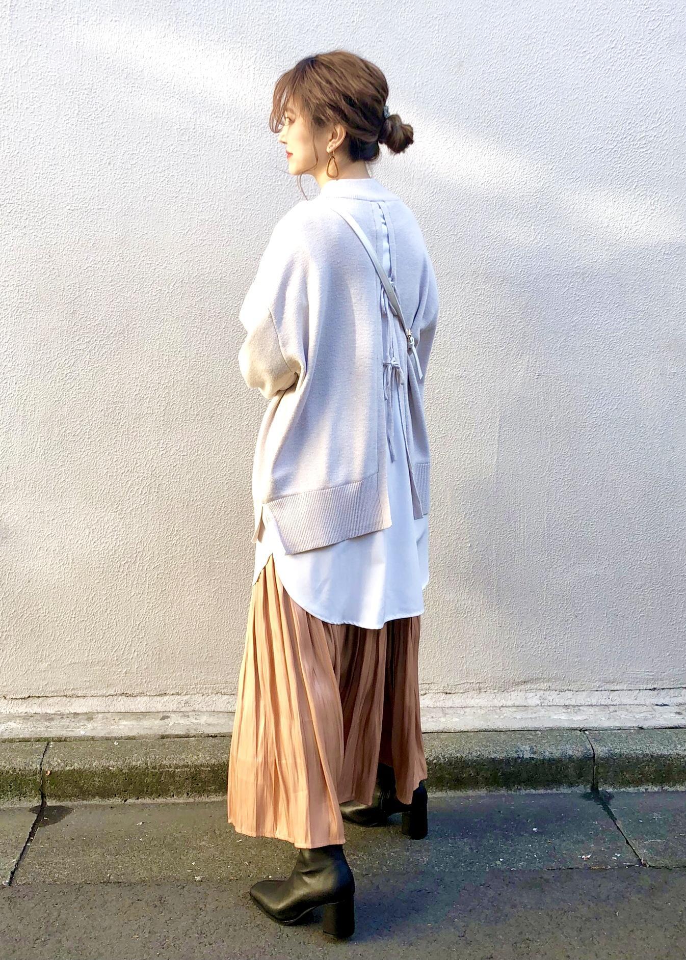 バックスタイルが可愛いレイヤードニット バックリボンがさりげなくオシャレにしてくれます。 今年トレンドのレイヤードスタイルを1枚で楽しめるニットです。 ニットにブラウスの袖と裾がドッキングしているので肩周りなど着膨れせずすっきりとした印象です。 着丈が長めなのでアウトスタイルでの着用がオススメです。