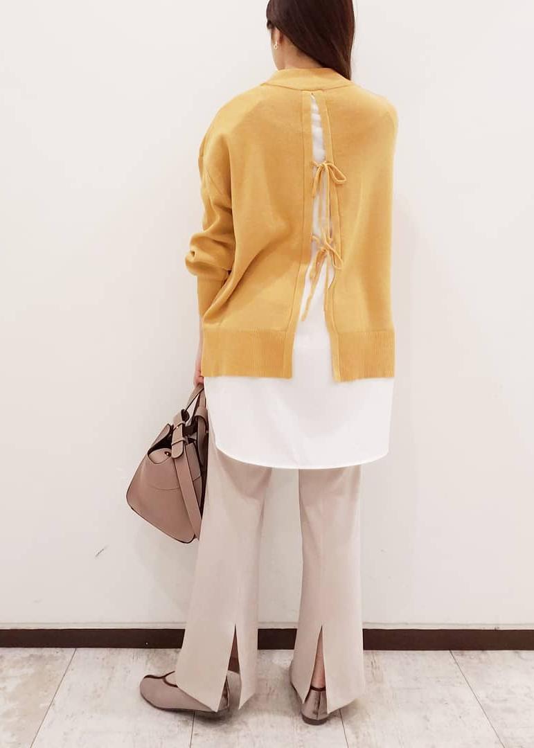 オレンジやベージュ系のワントーンレイヤードスタイル。 カジュアルなアイテム選びですが、色味で明るくて女性らしい印象にしています。 スタッフ身長156㎝