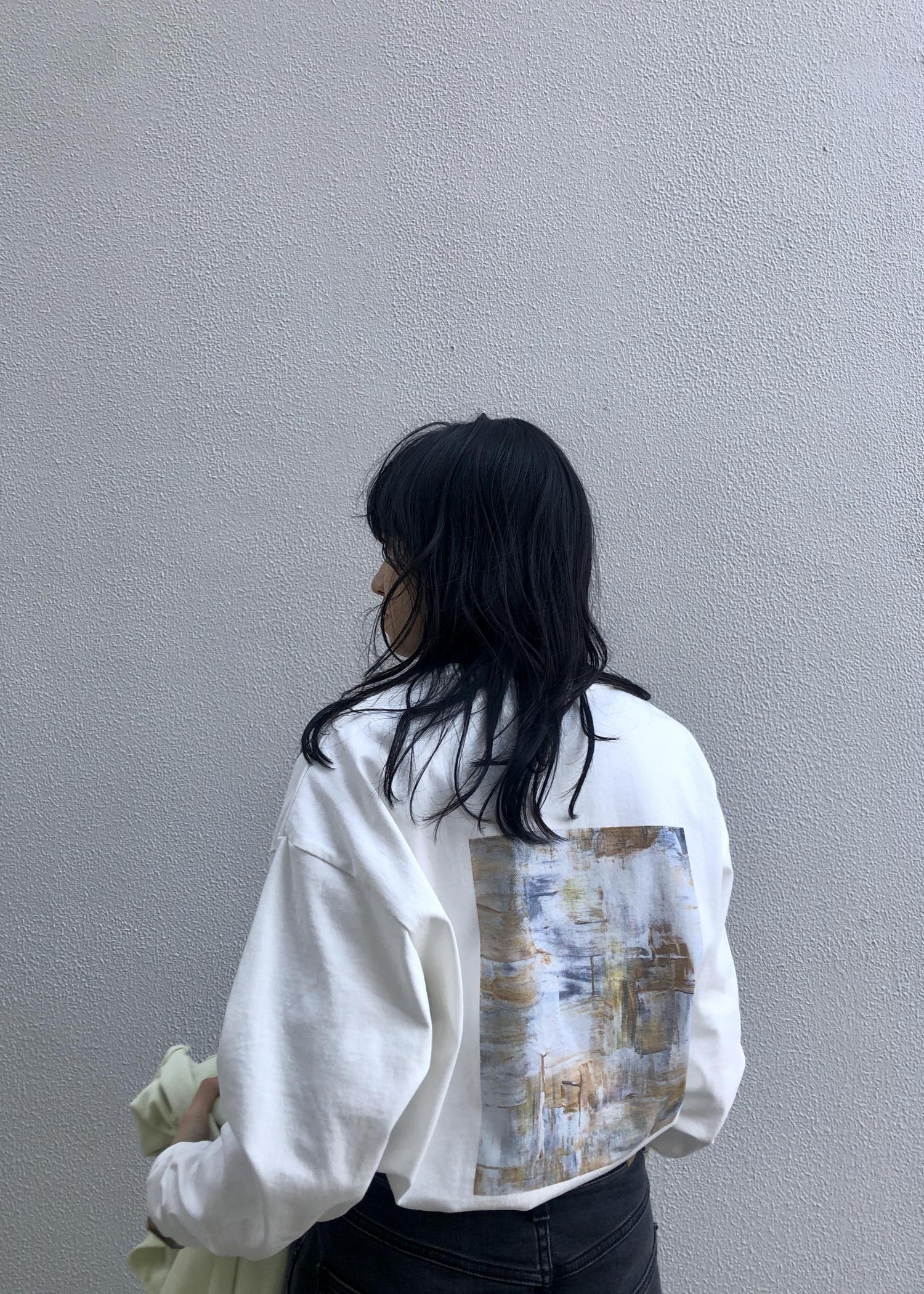 前後2WAYのスウェットですが、羽織としても使えてとても便利です。 春らしいカラー展開と拘りあるシルエットが着るだけで映えるデザインですよ✨ タイバッグはどの色も可愛いですが、コーディネートに合わせて爽やかな白をチョイス。 ベージュ系のカラーも万能なのでオススメです♪