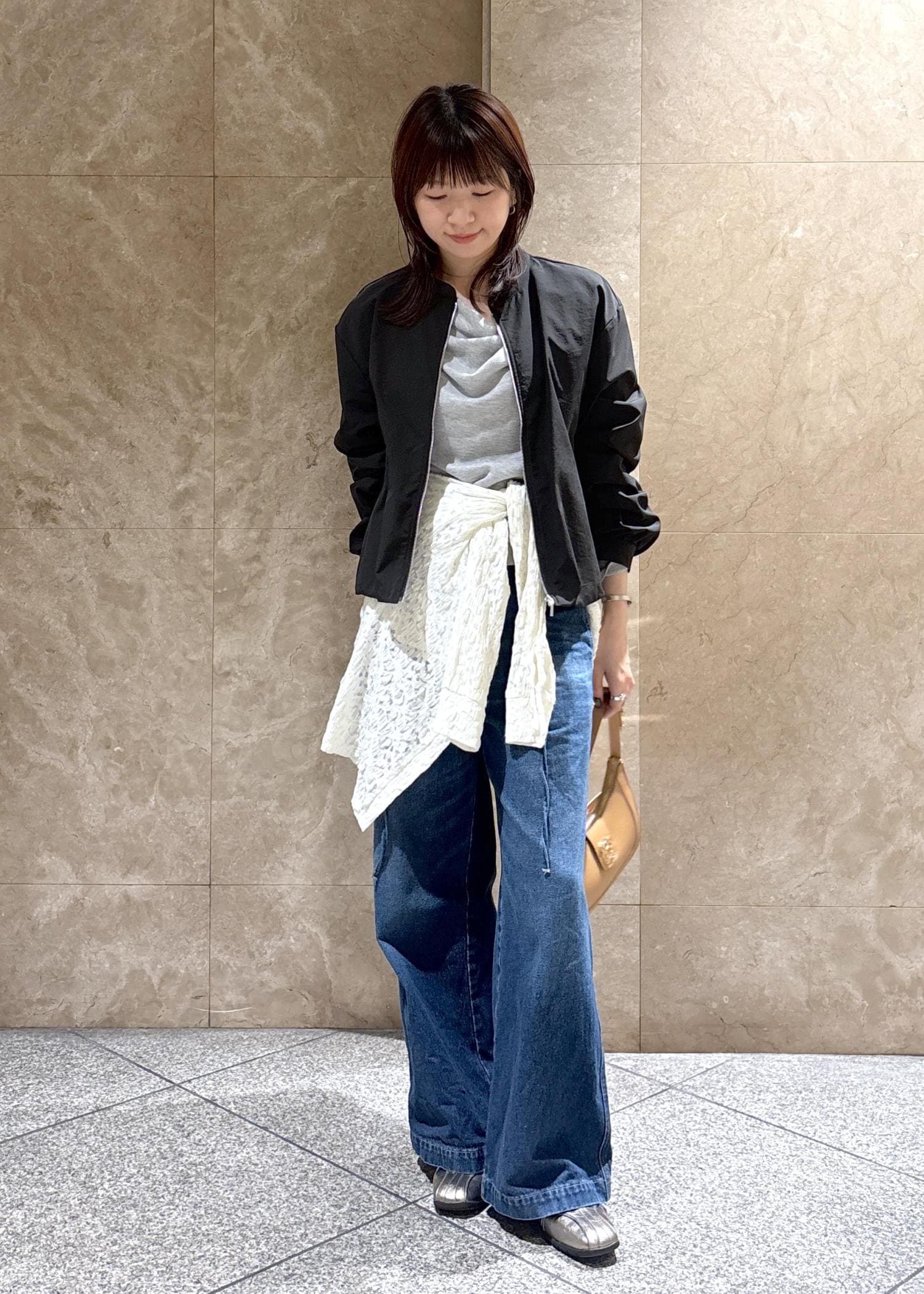 柄のブラウスが可愛かったので、ワントーンで。 キラッとした光沢感のある素材のスカートやカーディガンのニットを合わせて異素材ミックスでコーディネートしました。 こちらのブラウスは綺麗めにもカジュアルにも使えて、色んなコーディネートをお楽しみ頂けます✨