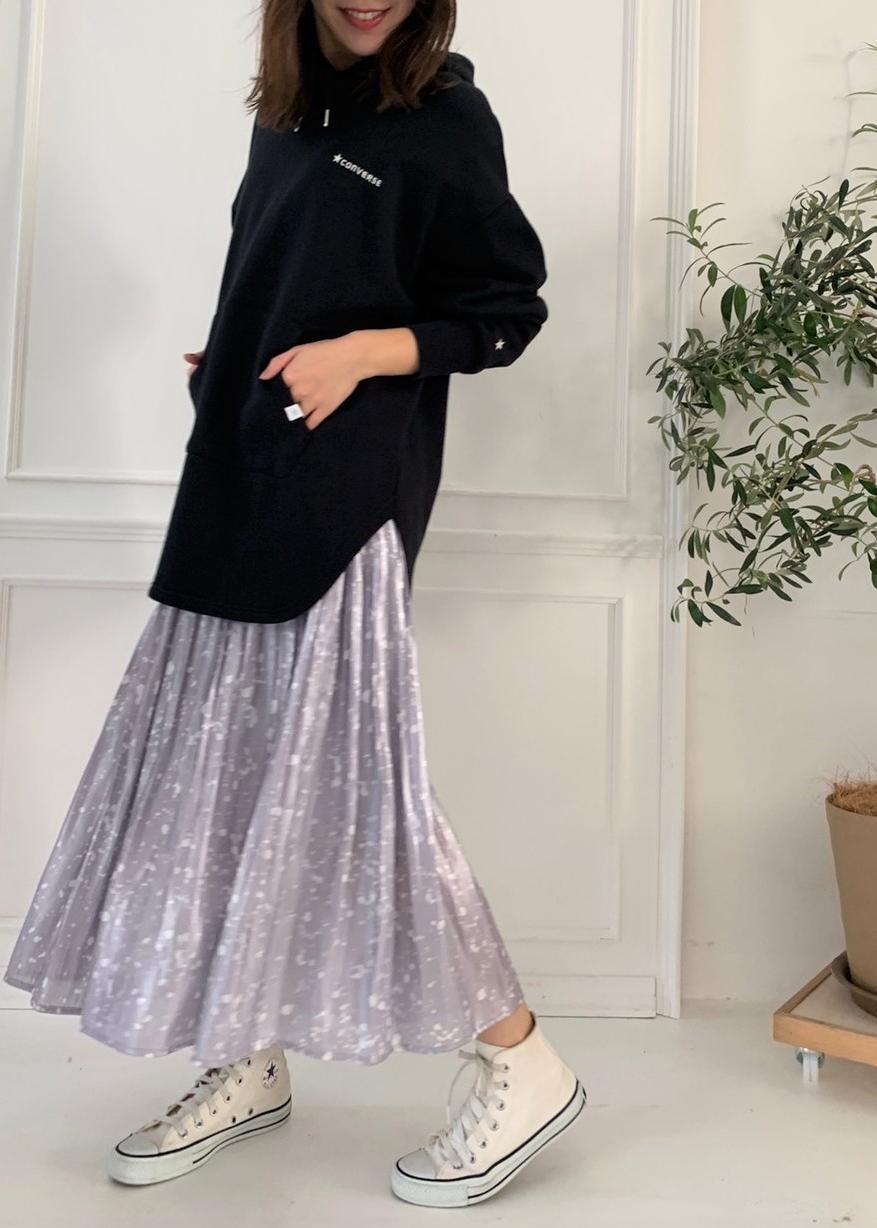 毎年人気のconverseコラボアイテム! ビッグサイズでゆったりと着られるパーカーに プリーツスカートを合わせたカジュアルMIXコーデです! デニム合わせもラフで可愛いですが ゆるっとスカート合わせもおすすめですよ★