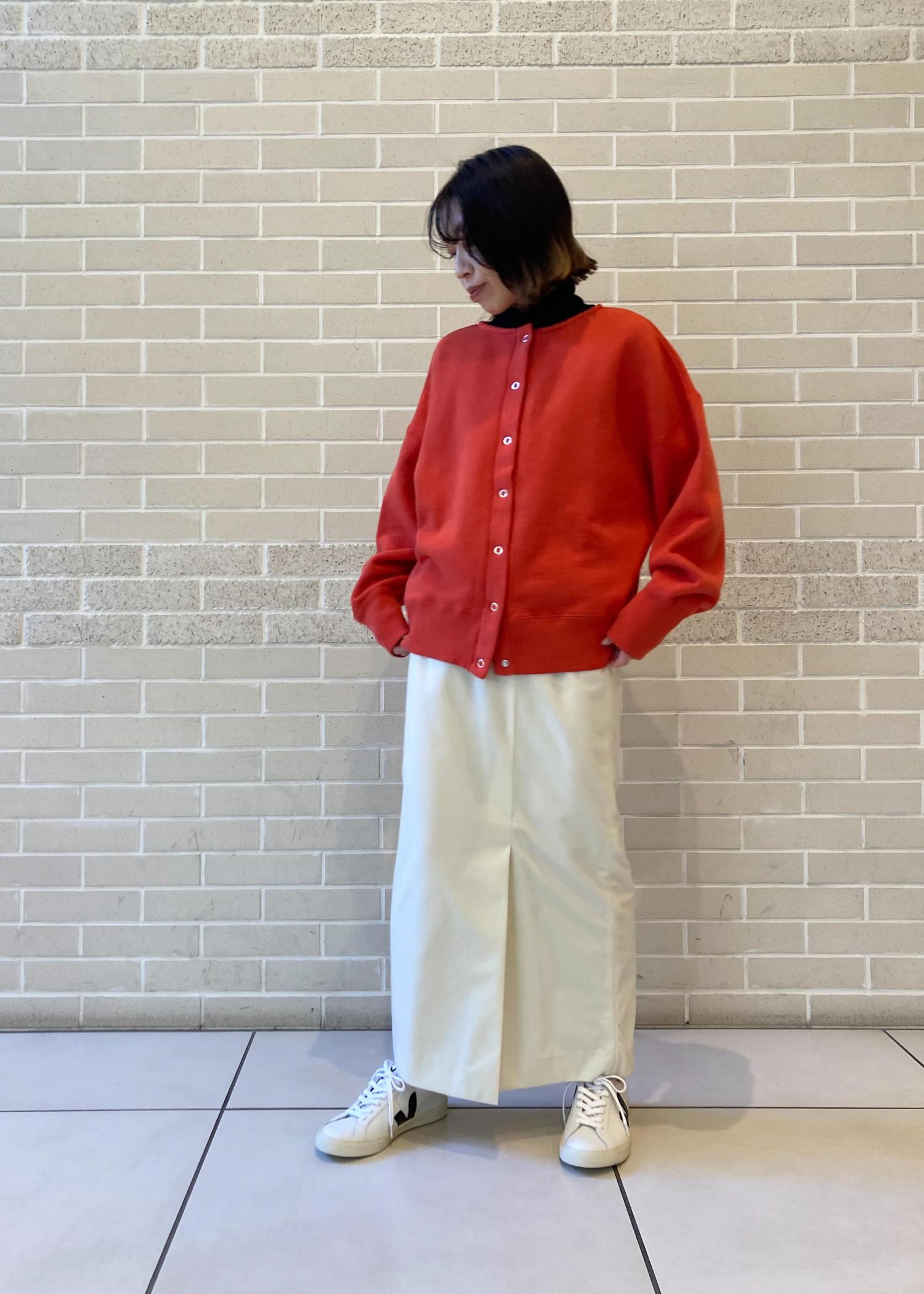 ボリュームスリーブの柔らかい印象のプルオーバーに、トレンドのロングレザースカートを合わせてみました!