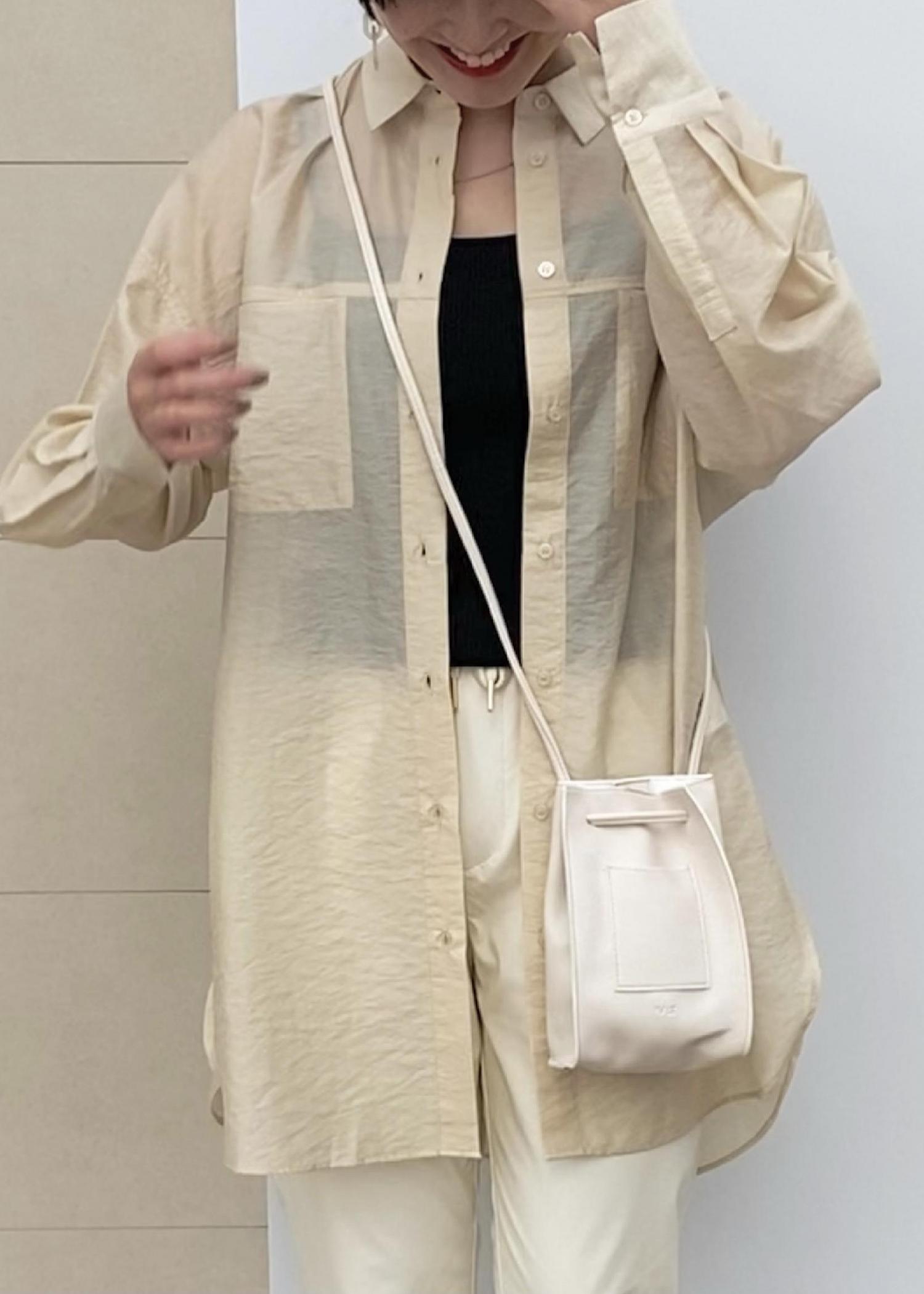 トレンドの素材を合わせるだけで 1トーンでもより華やかになります! シアーシャツは、色んなボトムに合わせやすいです。 今季も1着はワードローブに加えてみてはいかがでしょうか。