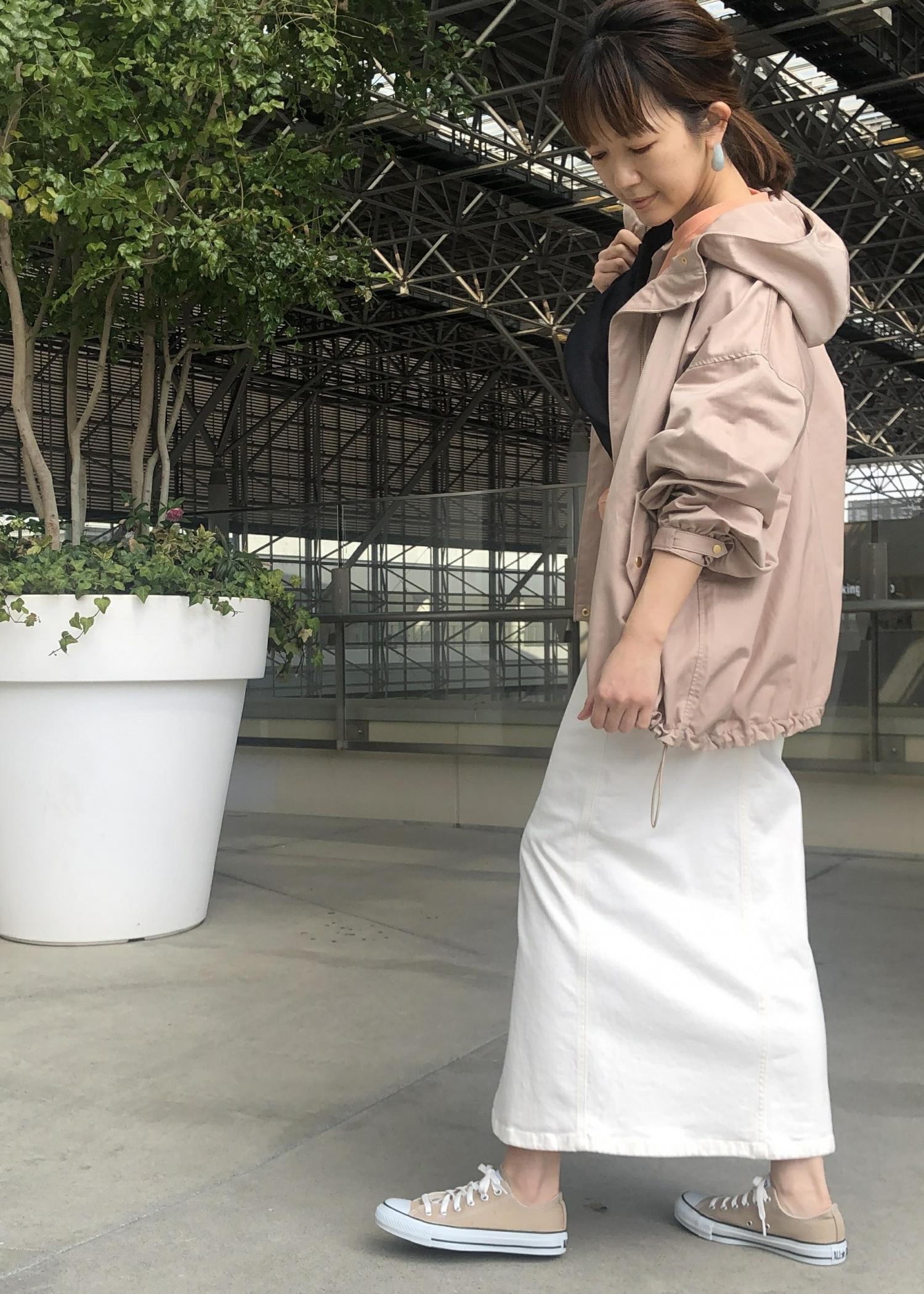 トレンドのスポーティーテイストを大人女子を意識してスタイリングしてみました! 春カラーやホワイトデニム等を使うと 柔らかい雰囲気でスポーティー感を楽しみやすいですよ!