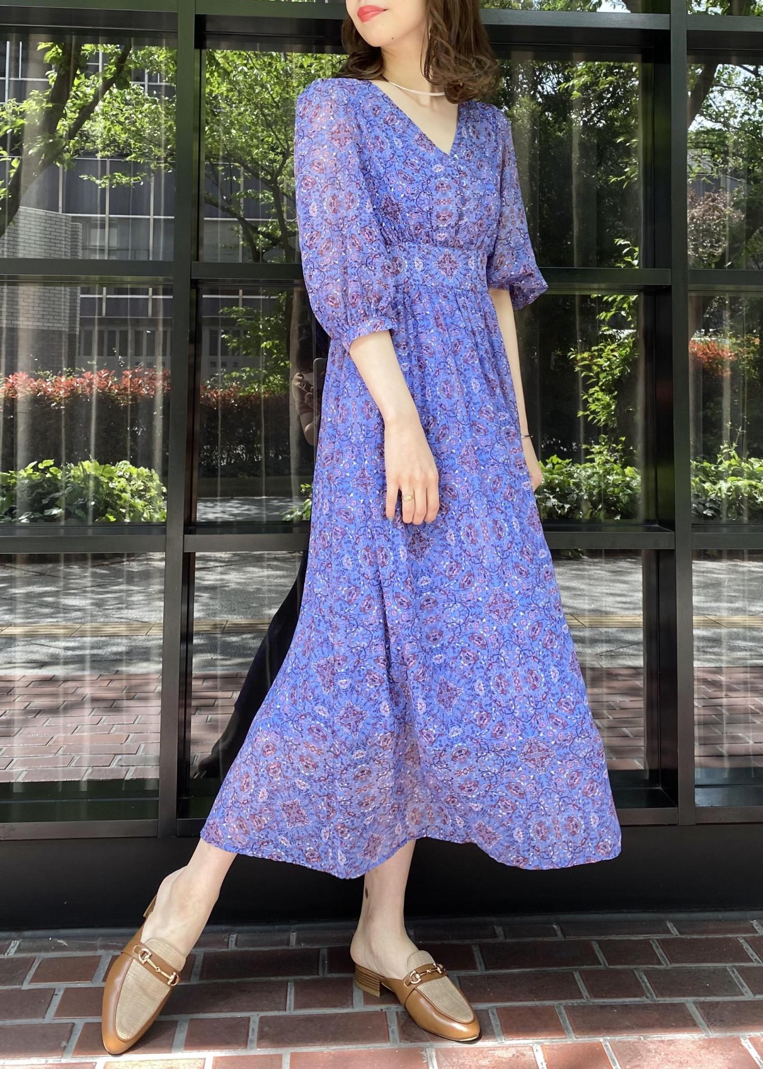 エスニック柄ワンピース。 さわやかなブルーは着映えします♡ 風が吹くたびゆらっと揺れるデザインは涼しげで夏にぴったりです◎