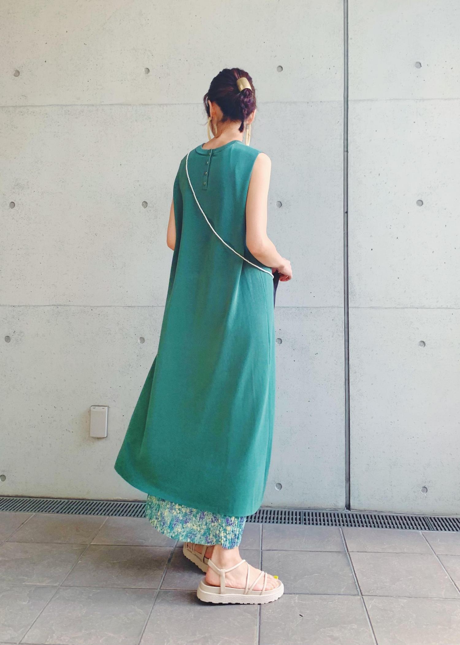 ワンピース×スカート×シアーシャツとのレイヤードで