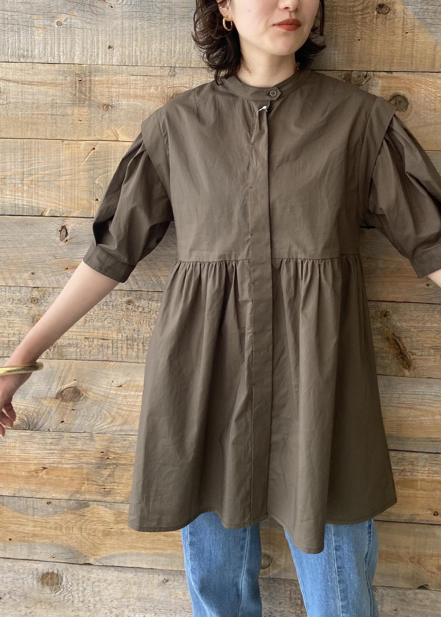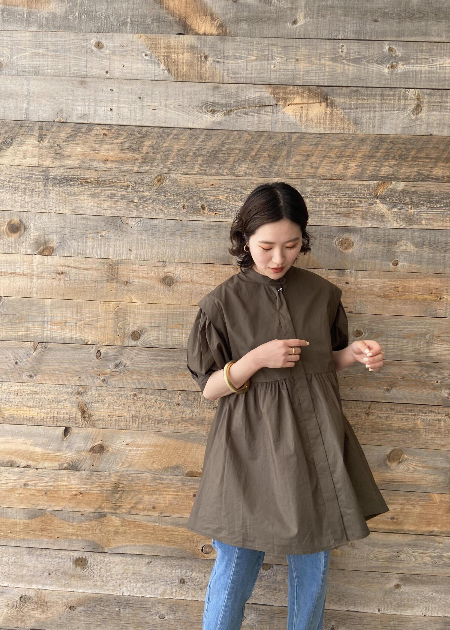 大人気のタイプライターブラウスが 半袖になって再登場です☺︎ 前回なかったカーキの色味が新鮮! 落ち着いた色味で、大人っぽく着れます◎ シンプルにデニム合わせでも、 シルエットが綺麗なのでオシャレに決まります♡