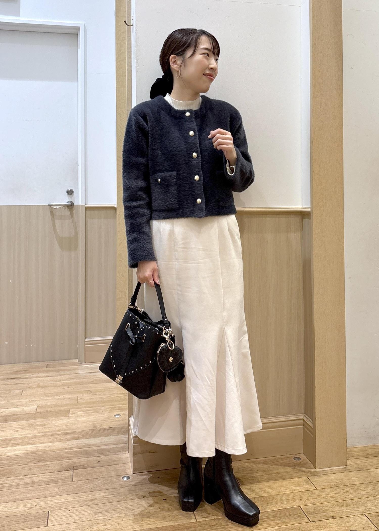 段々気温が高い日も増えてきたので、 白×グリーンの爽やかな色合いにしてみました* ブラウスはペプラムデザインで 裾に少し広がりがあるので、 ボトムはタイトスカートを合わせて Iラインシルエットですっきりさせたのが ポイントです! ブラウスは前釦が開けられるので インナーを中に入れてあげて、 羽織り物使いをしてあげても可愛いです♪