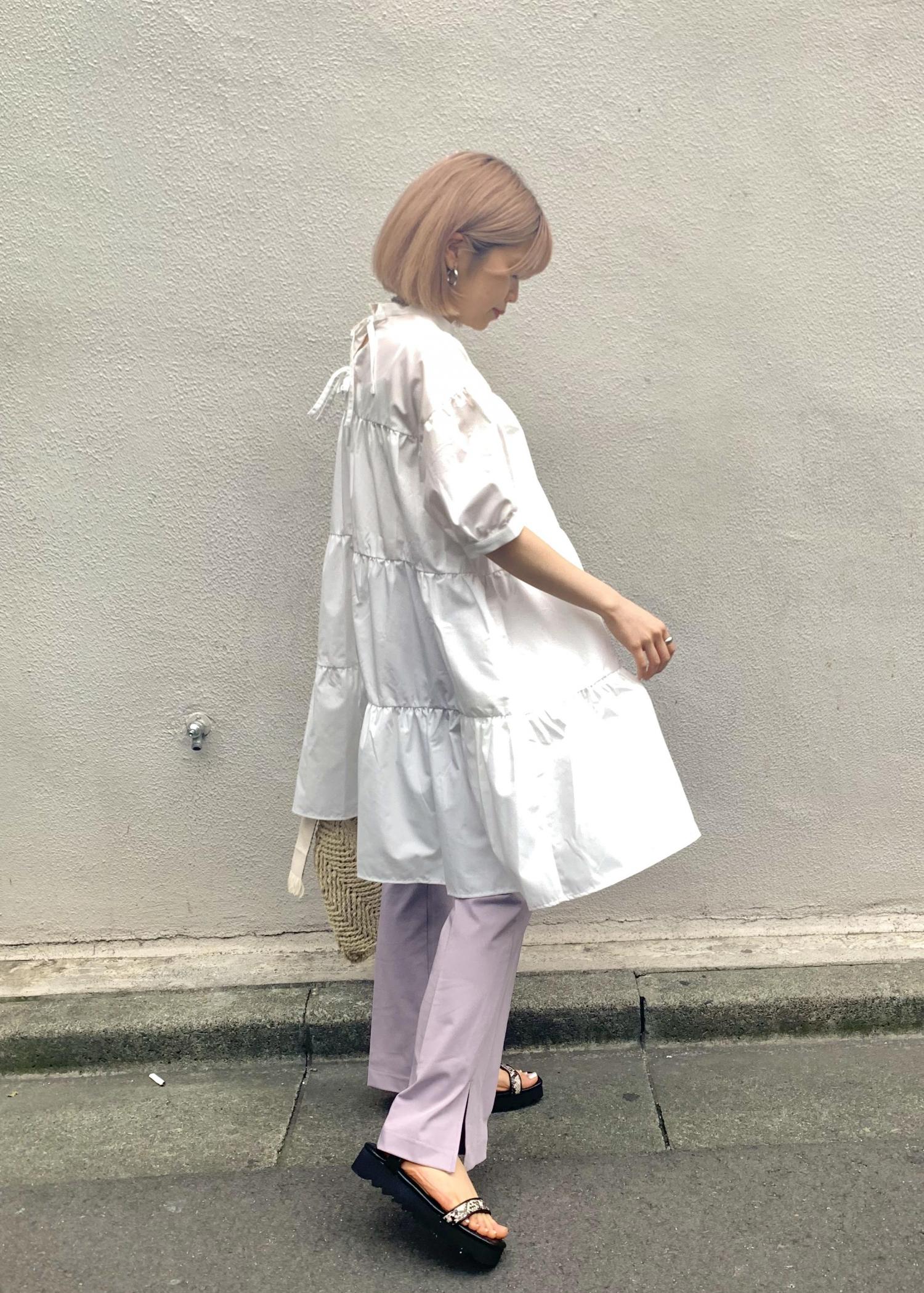 大人の女性や甘さをあ抑えたい方は、細身のパンツをレイヤードするのがおすすめです。