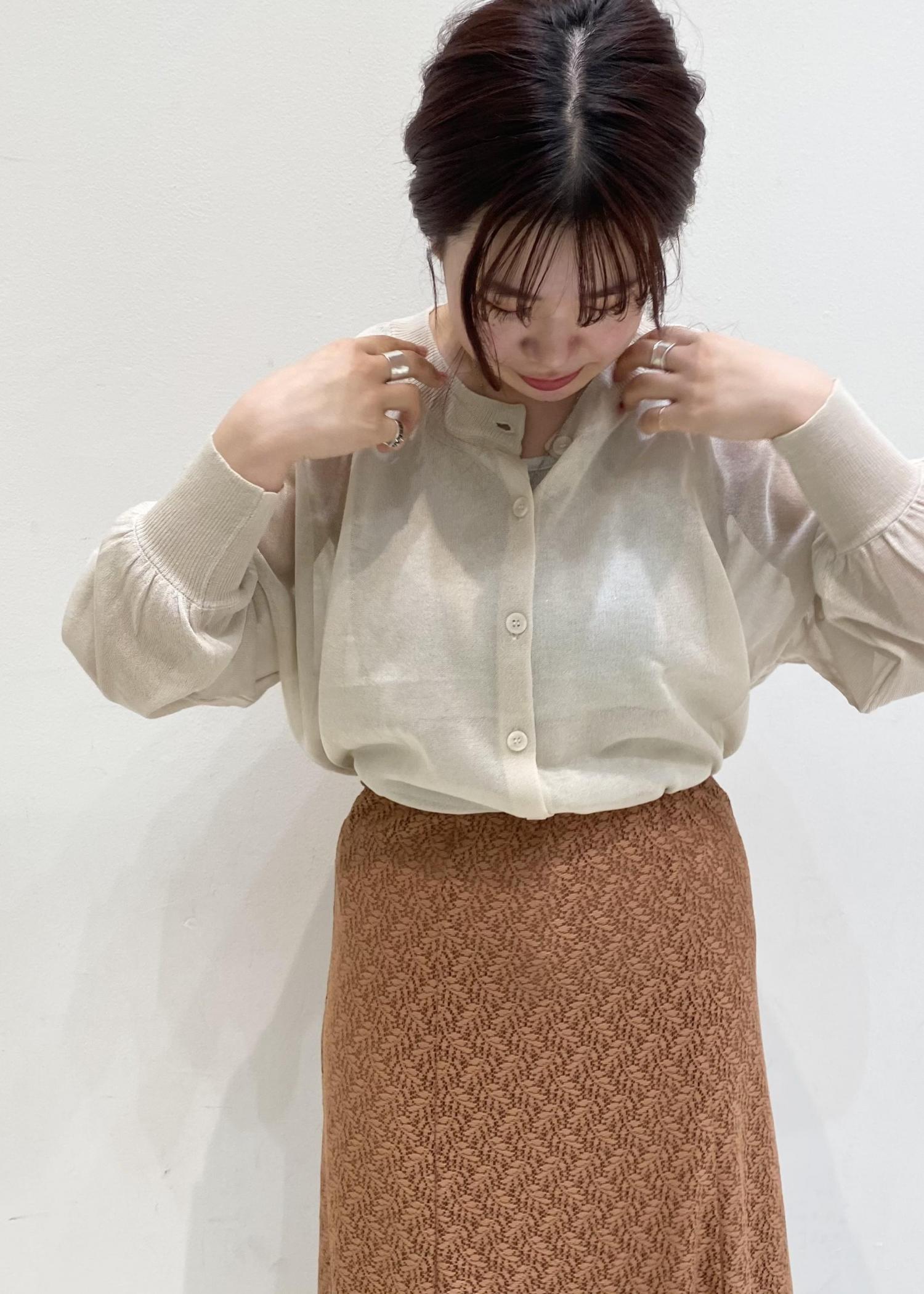 シアー素材のカーディガンは、少し暑さの感じる今の季節にピッタリですし、夏の冷房対策としても活躍してくれます♪