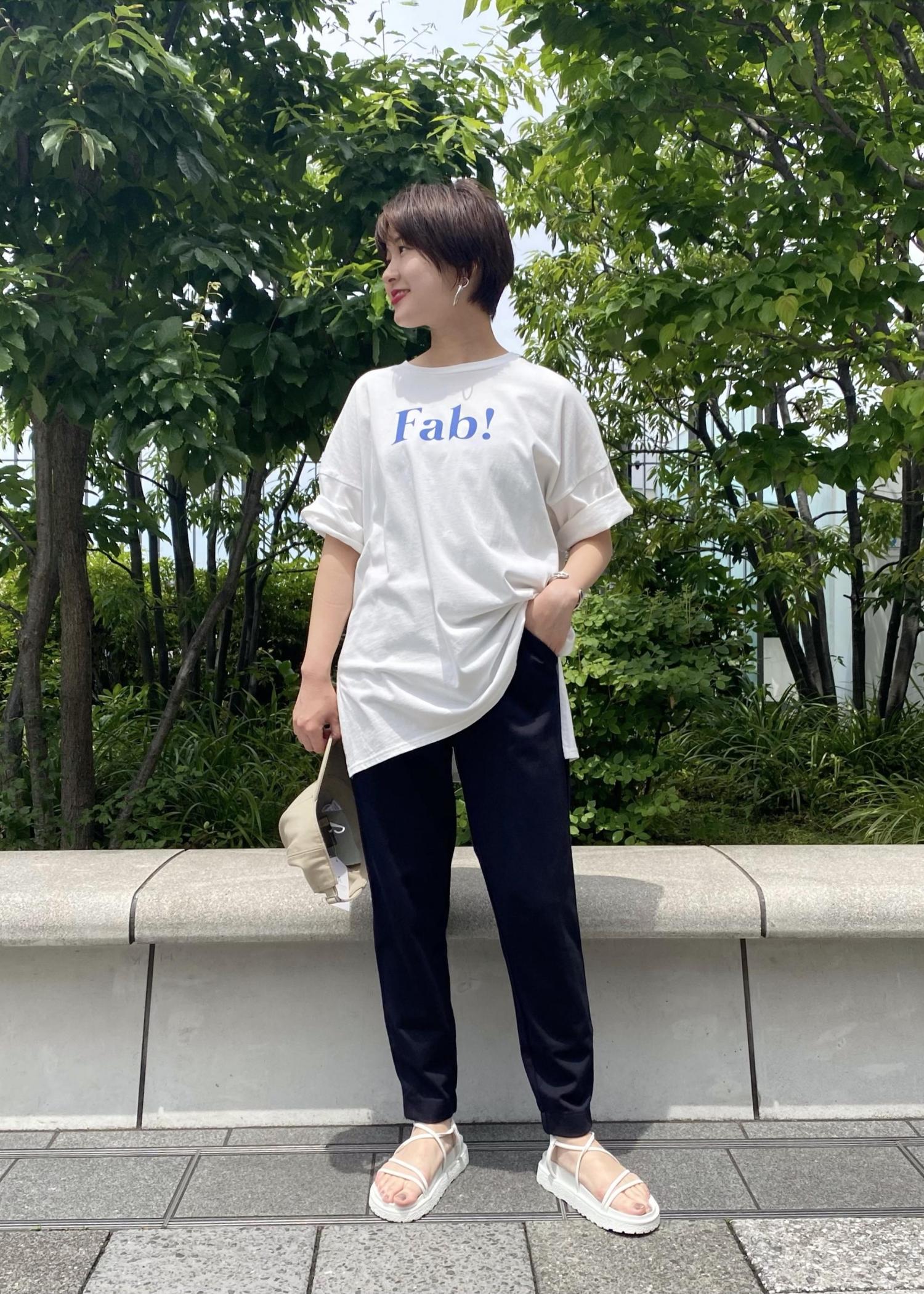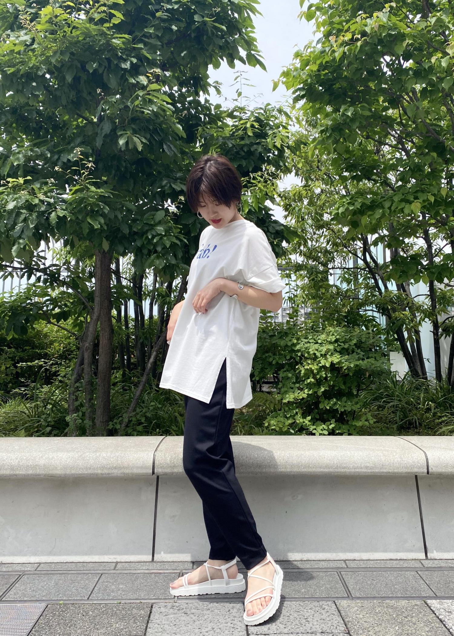 夏大活躍のTシャツのご紹介です。 着丈の長さがお尻が隠れる長さなので、パンツ意外にも タイトめなスカートスタイリングにおすすめです。 袖を捲ってあげたり、そのまま5部袖でつかったり・・ シンプルでも色んな着方を楽しめる1着です。