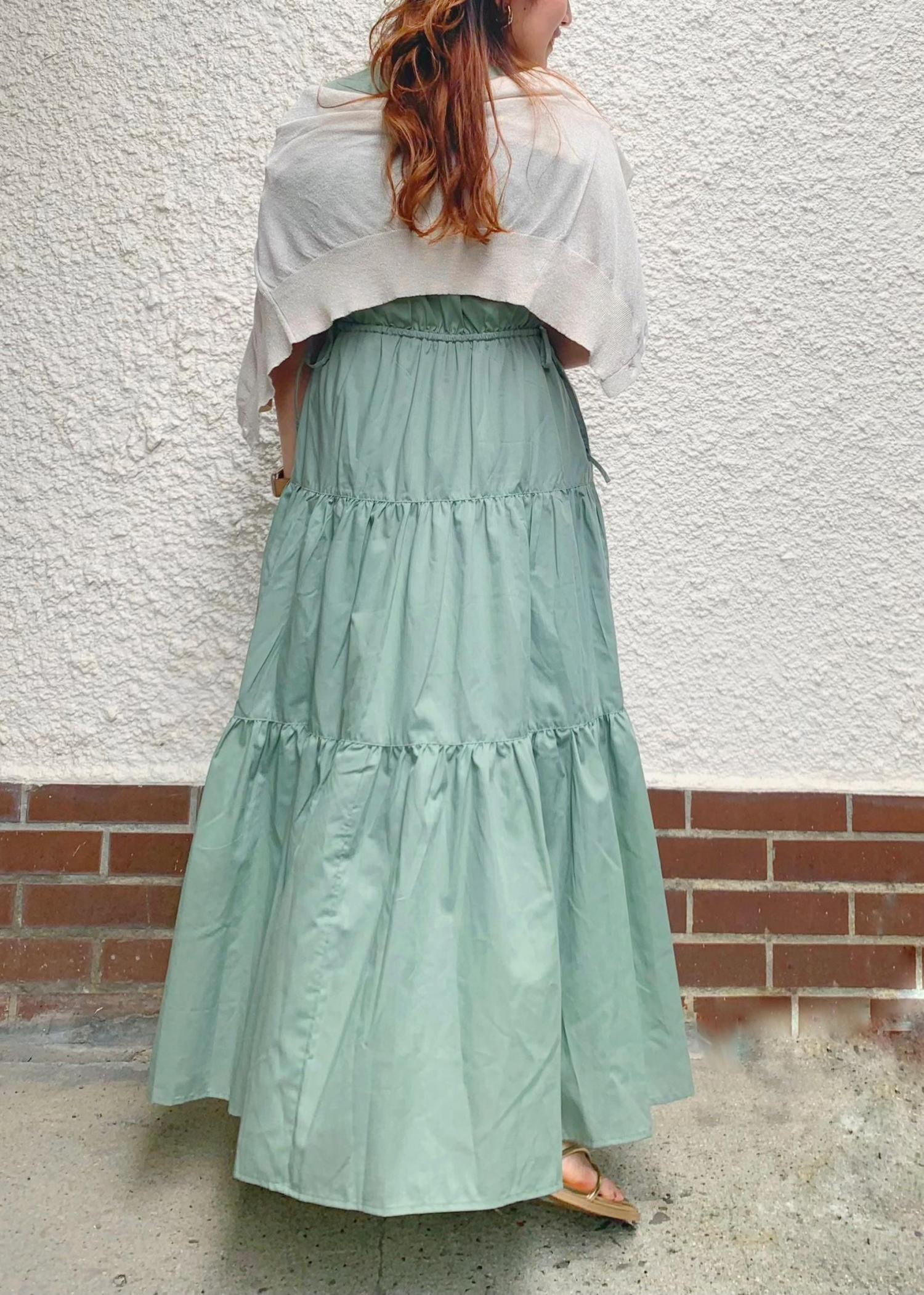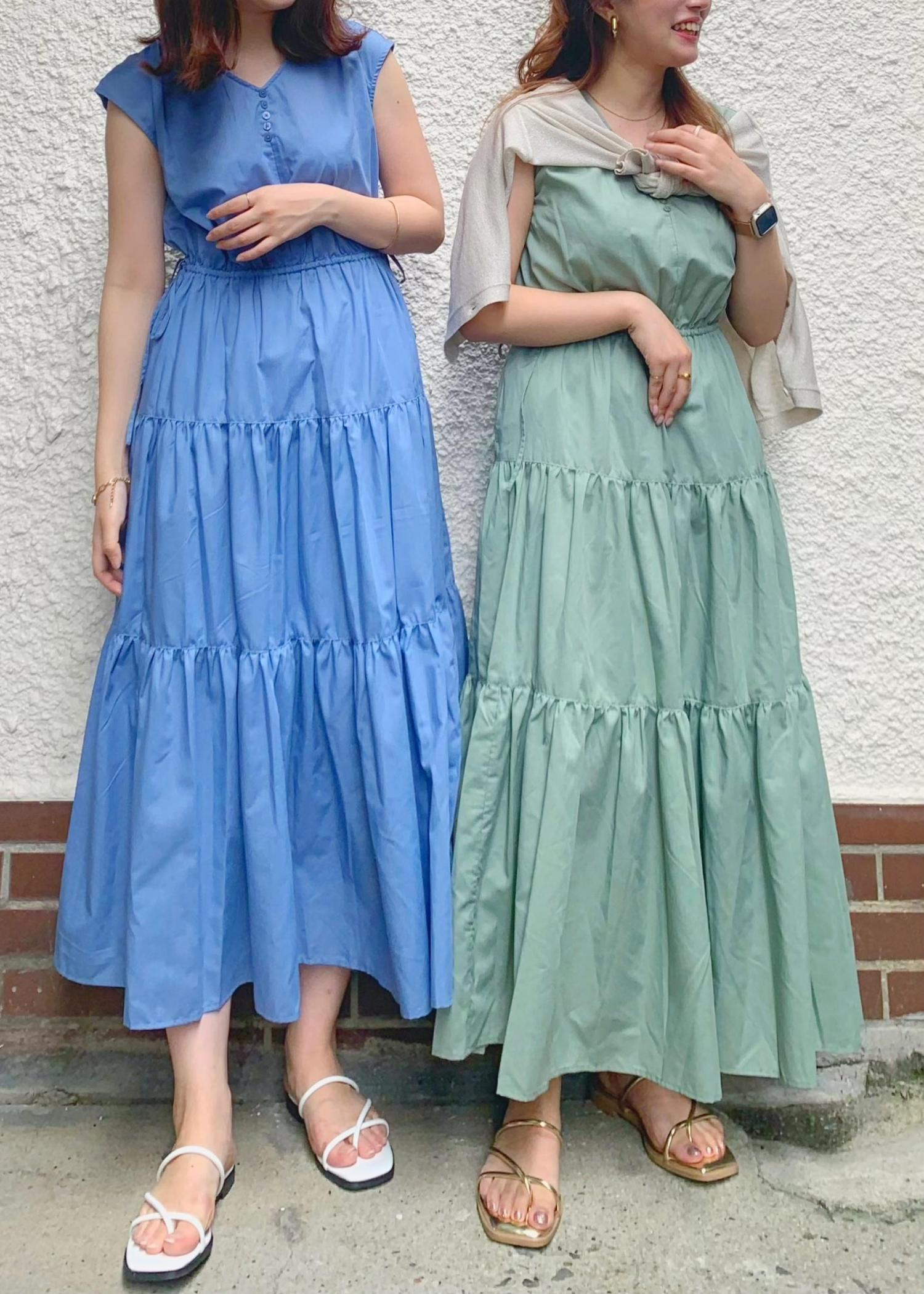 涼しげなグリーンのワンピースとベージュ系のラメが入ったカーディガンで夏らしさが漂うコーディネート☺︎