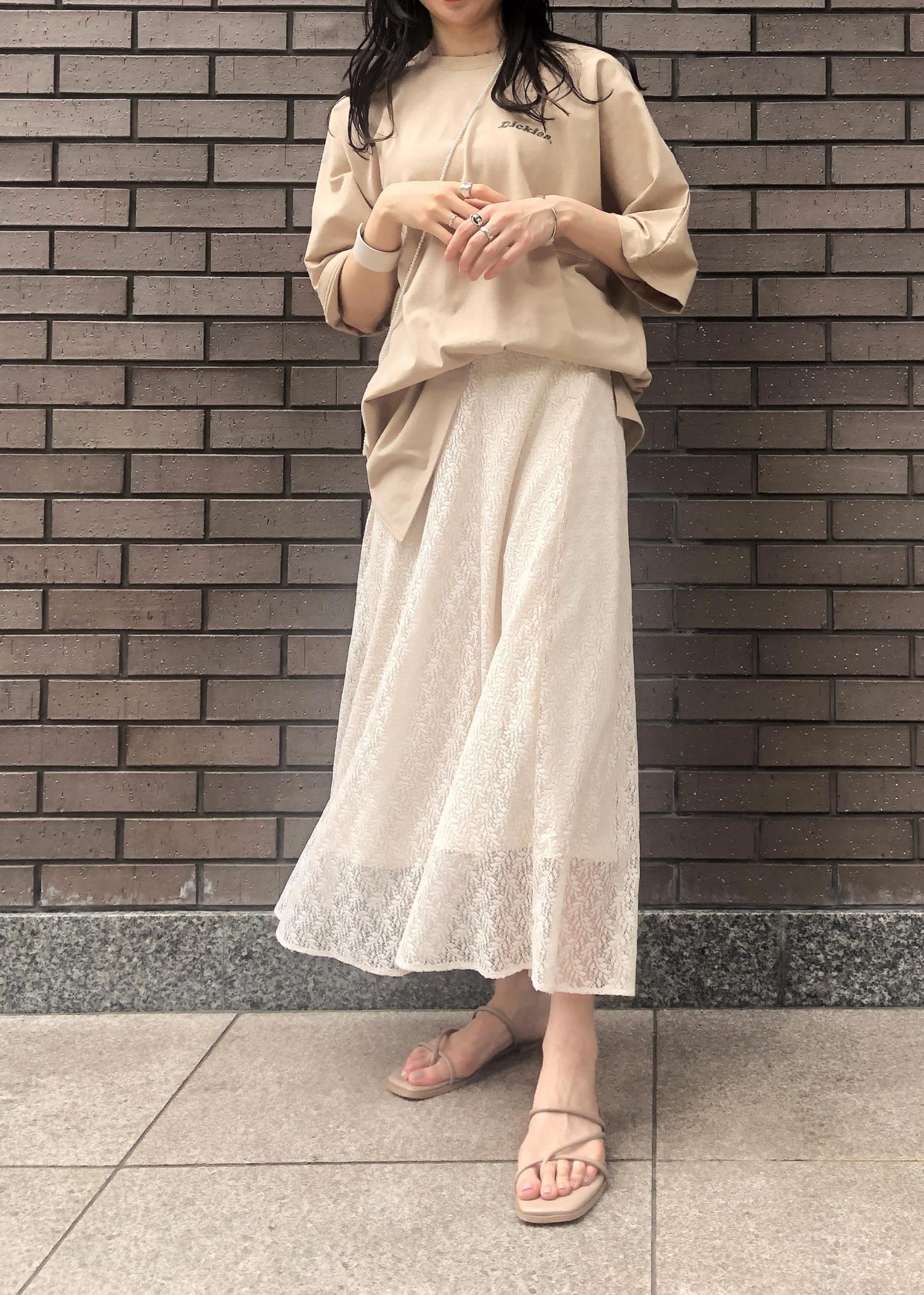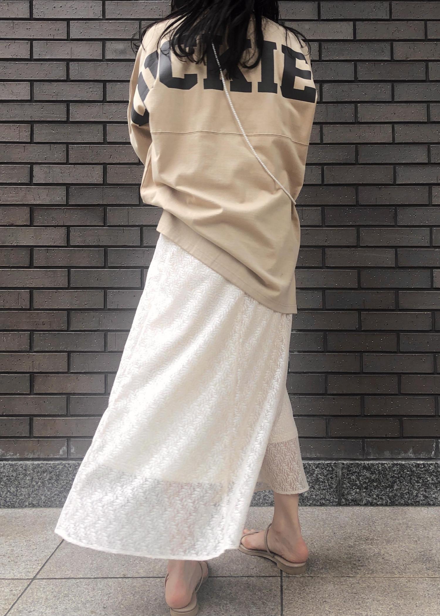 メンズライクなアイテムですが、レースアイテムを合わせてワントーンでまとめると柔らかい印象になります。
