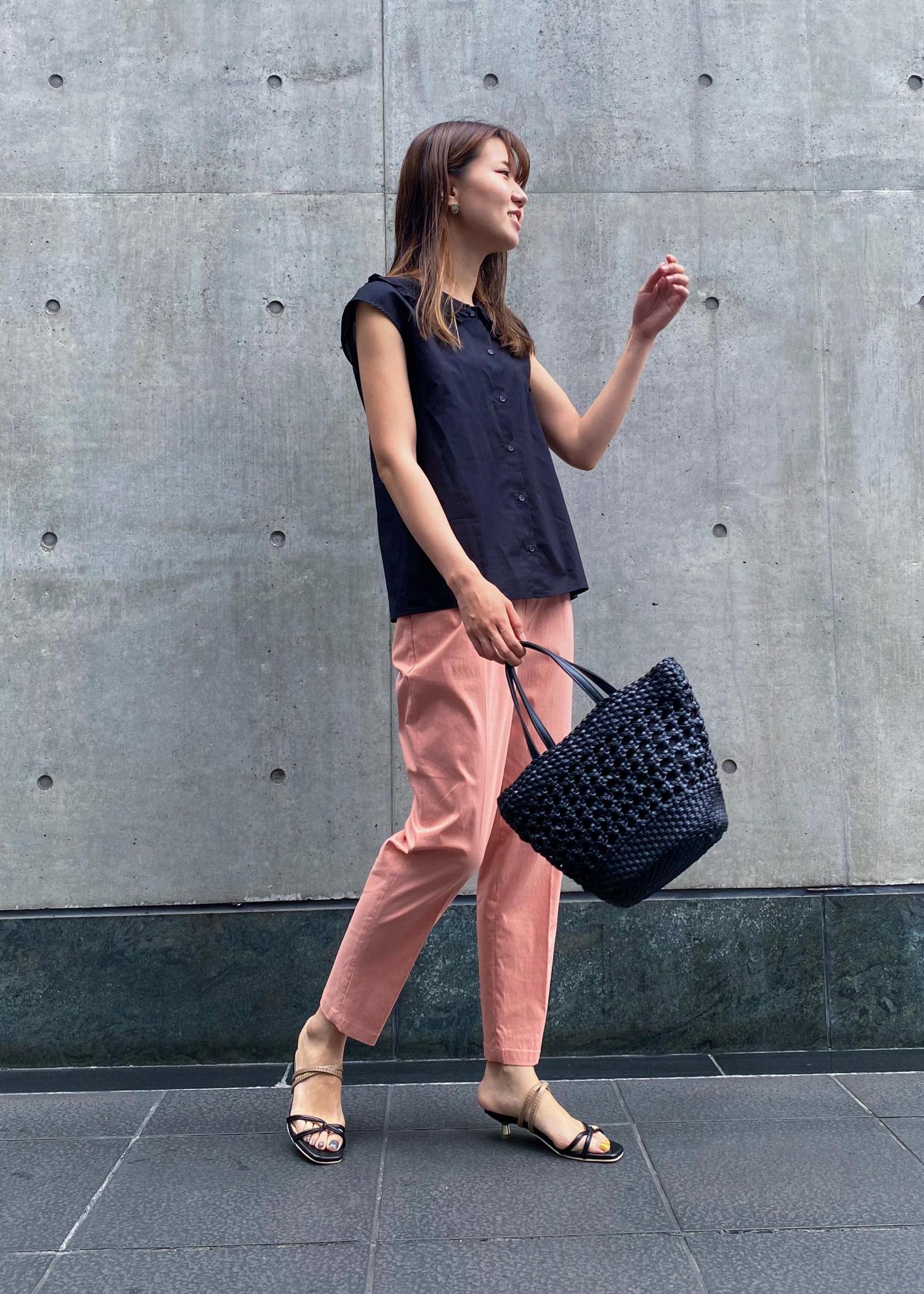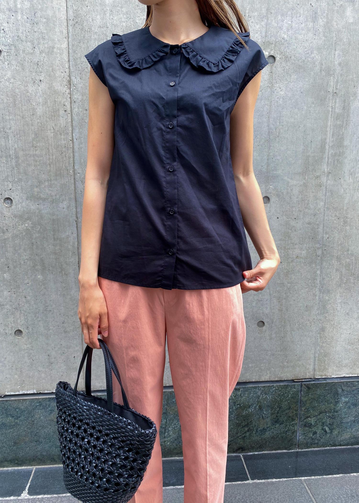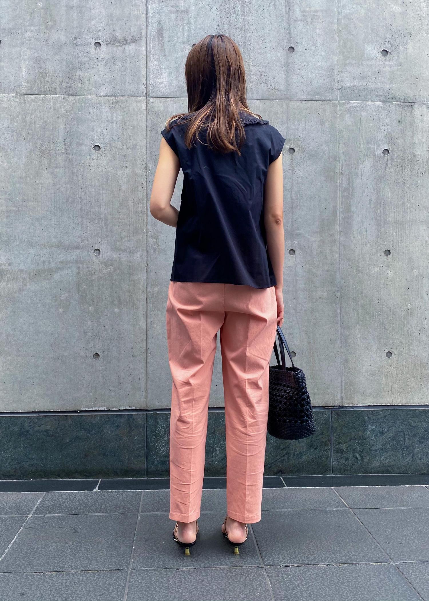 フリルセーラーカラー×カラーパンツを合わせることで、フェミニンになりすぎず大人なstyleに♪
