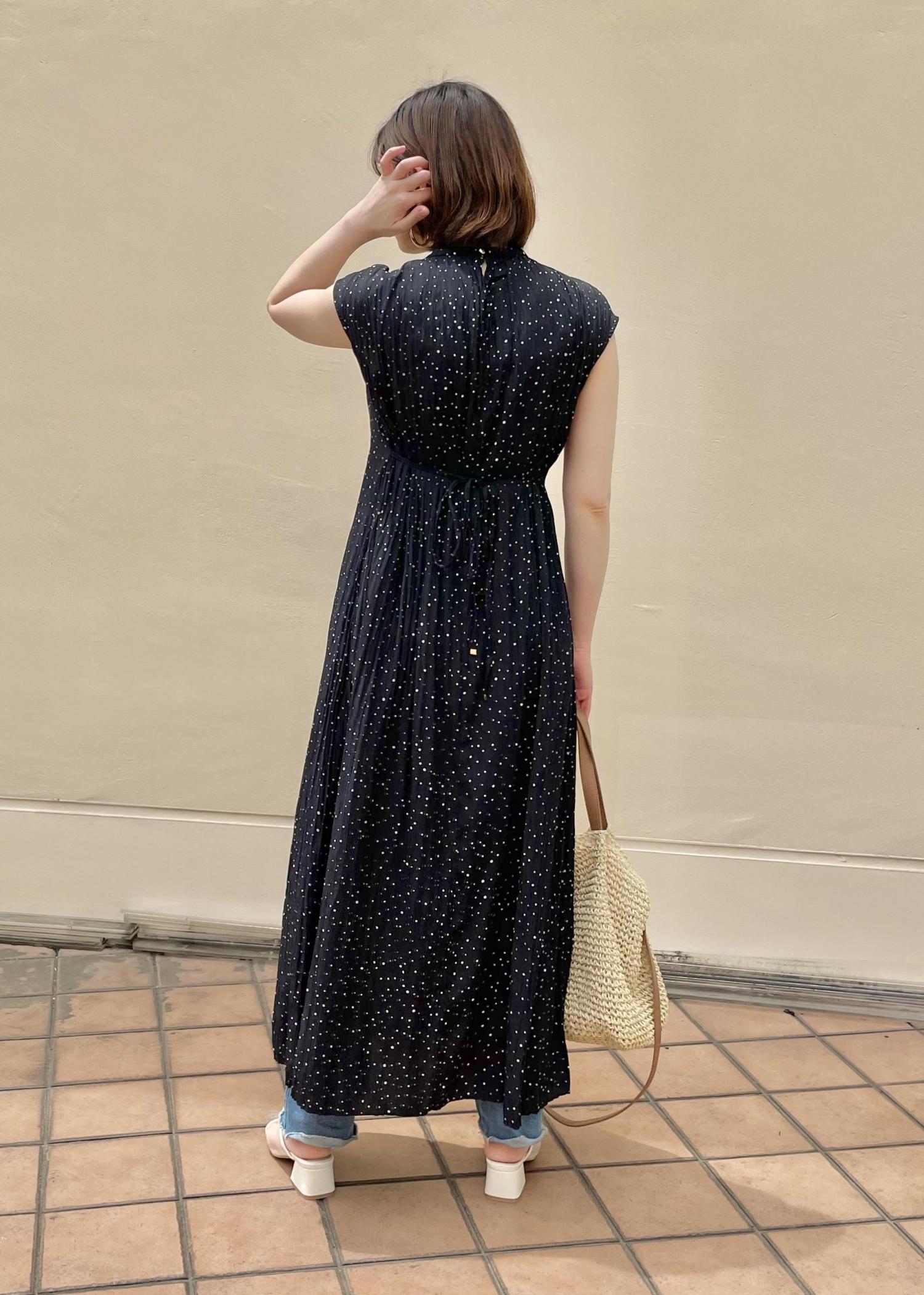ワッシャー加工が涼しげな印象のワンピースはキレイ目、カジュアルにも着て頂けます。 今回はカジュアルにしたかったのでデニムを合わせました。 丈が長めのワンピースなのでボトムを合わせる場合、身長156cmの私はヒールを履いた方がバランスが良かったです。