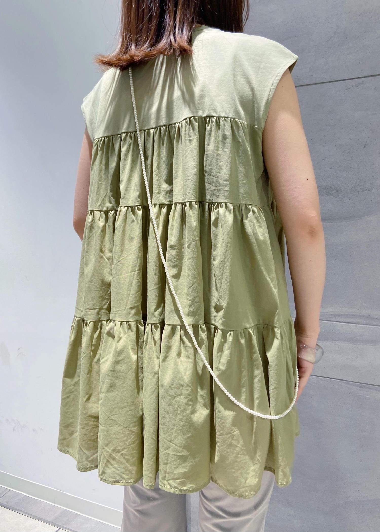 トレンド感のあるティアードデザイン◎ 綿素材で夏でも涼しく着用できます。 ふんわりとしたシルエットなので 細身のパンツやタイトスカートなど スッキリしたボトム合わせがおすすめです!