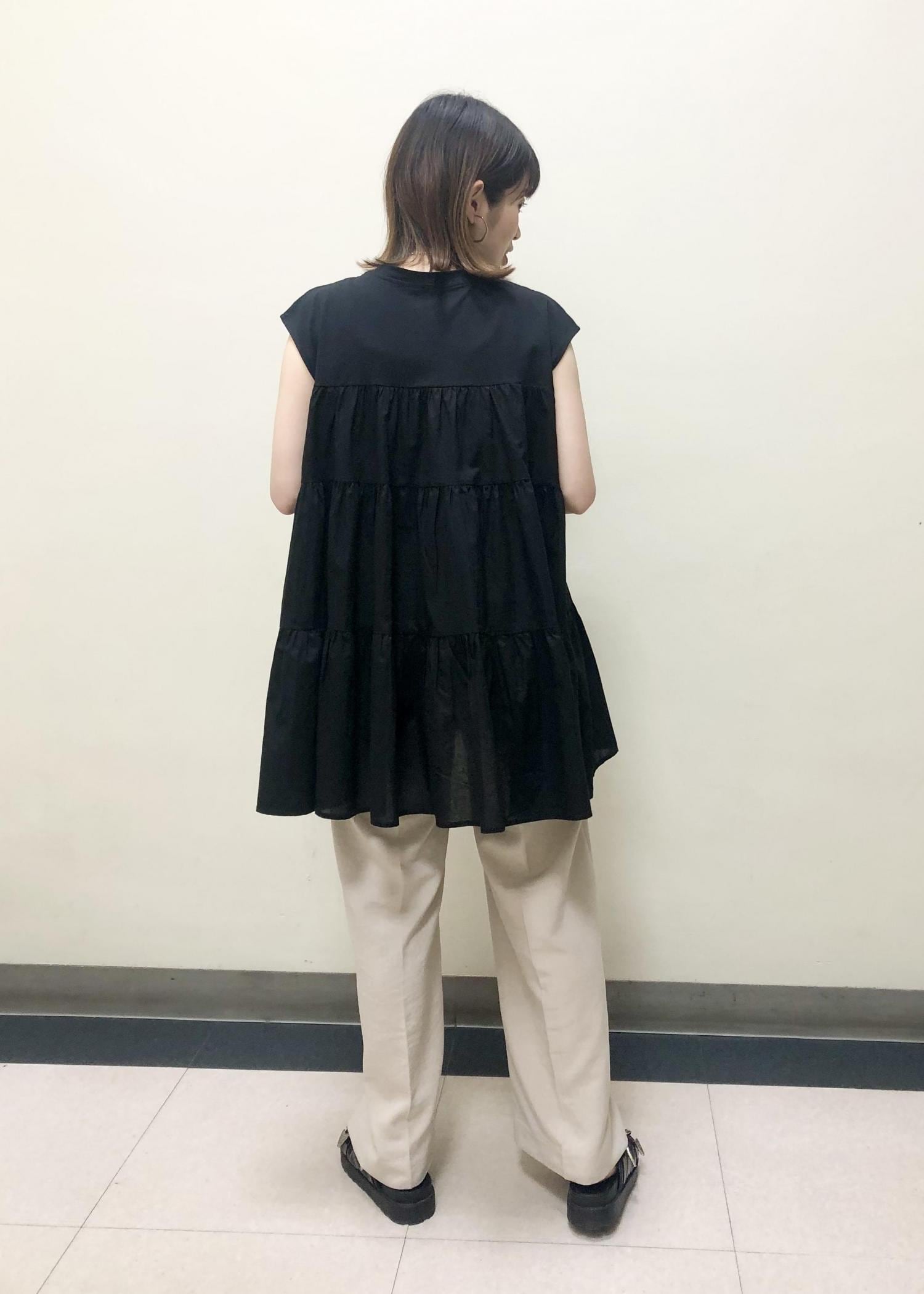 夏避けがちなブラック系でも、軽さのある生地感と、