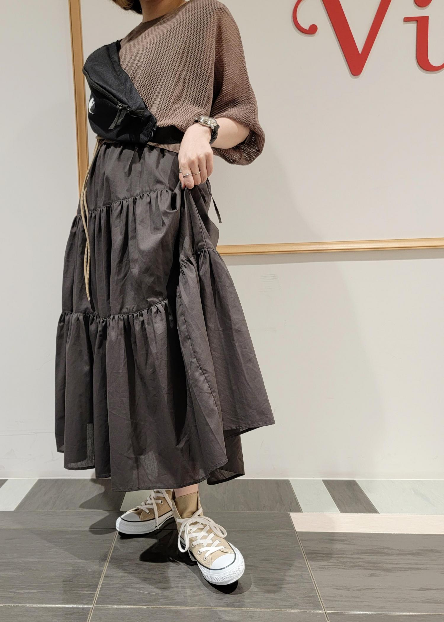 甘めなティアードワンピースにメッシュトップスを合わせてカジュアルなコーディネートにしました!