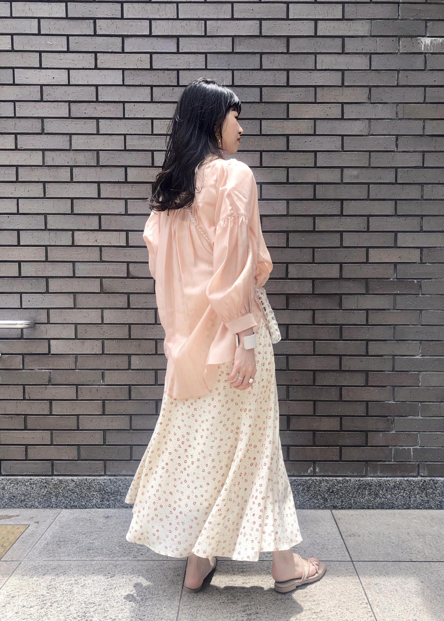 ピンクやベージュのようなコーラル系のオレンジカラーがイエベに映えると思い、シャツのカラーが引き立つようなコーディネートに。