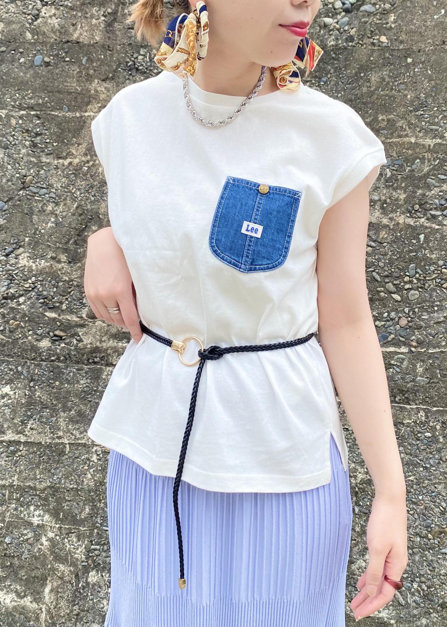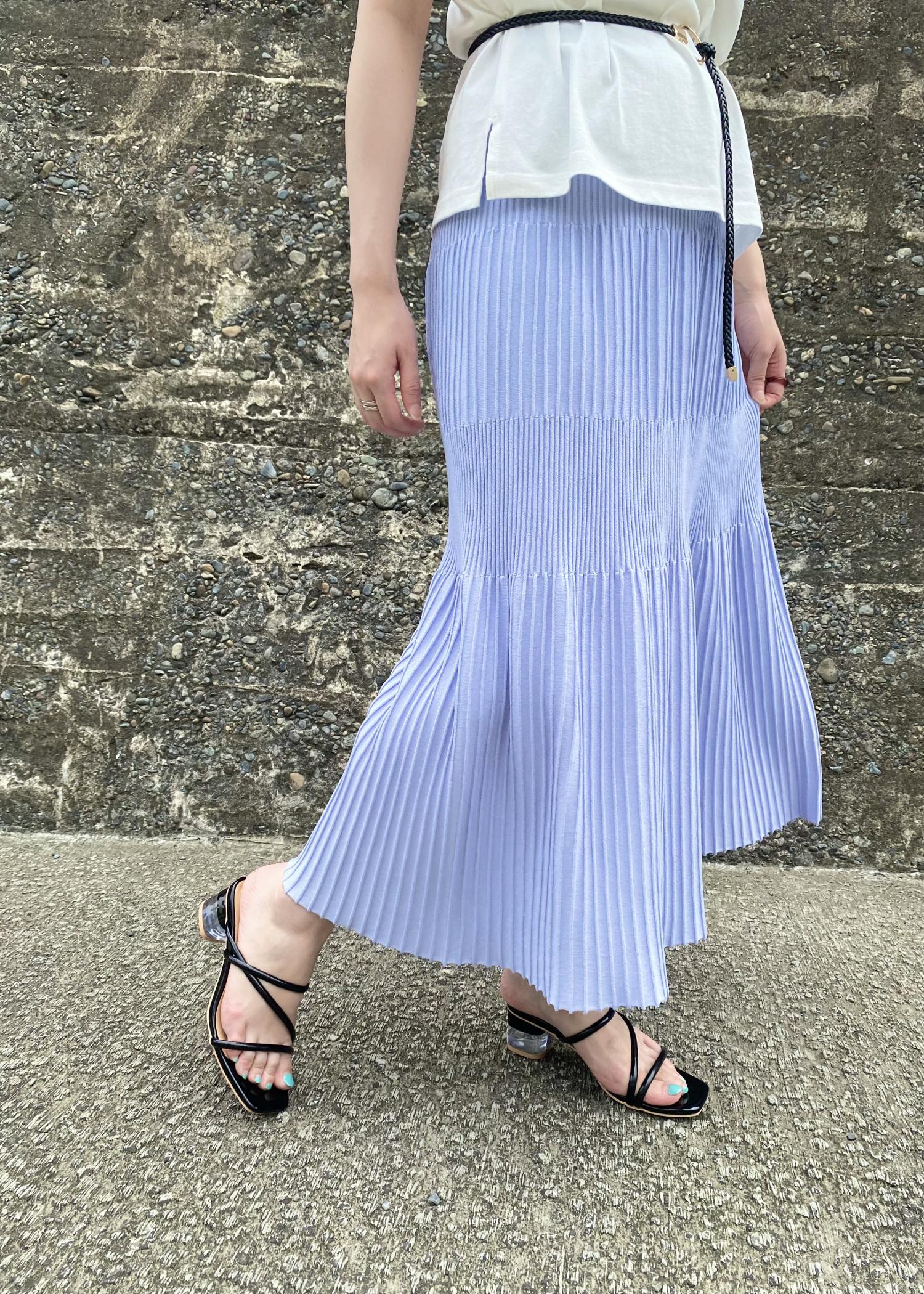 Tシャツにプリーツスカートを合わせて 大人カジュアルコーデに❣️ コットンとニットと異素材を組み合わせて コーデにメリハリをつけました! . 小物をブラックで統一させて、 引き締めています
