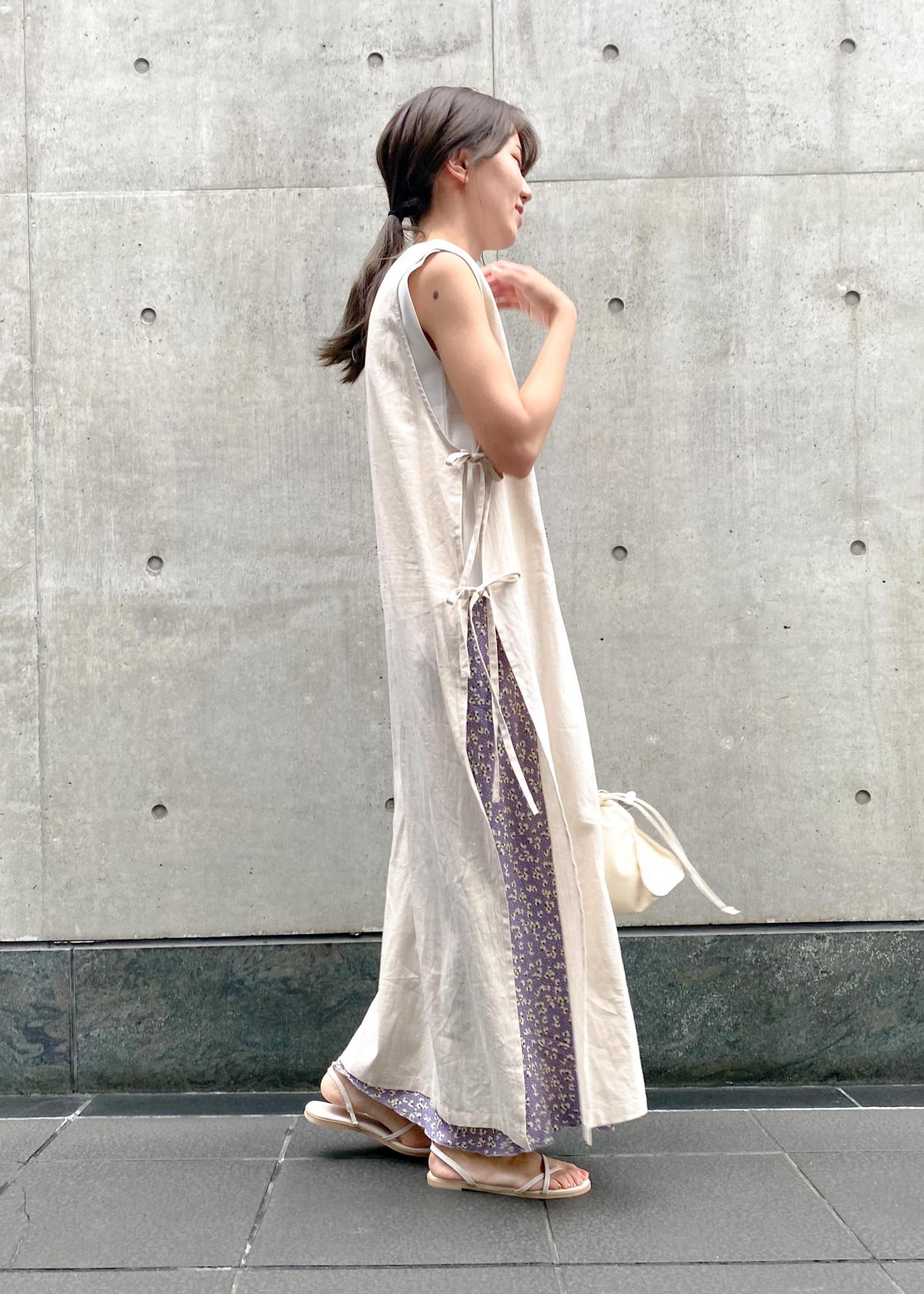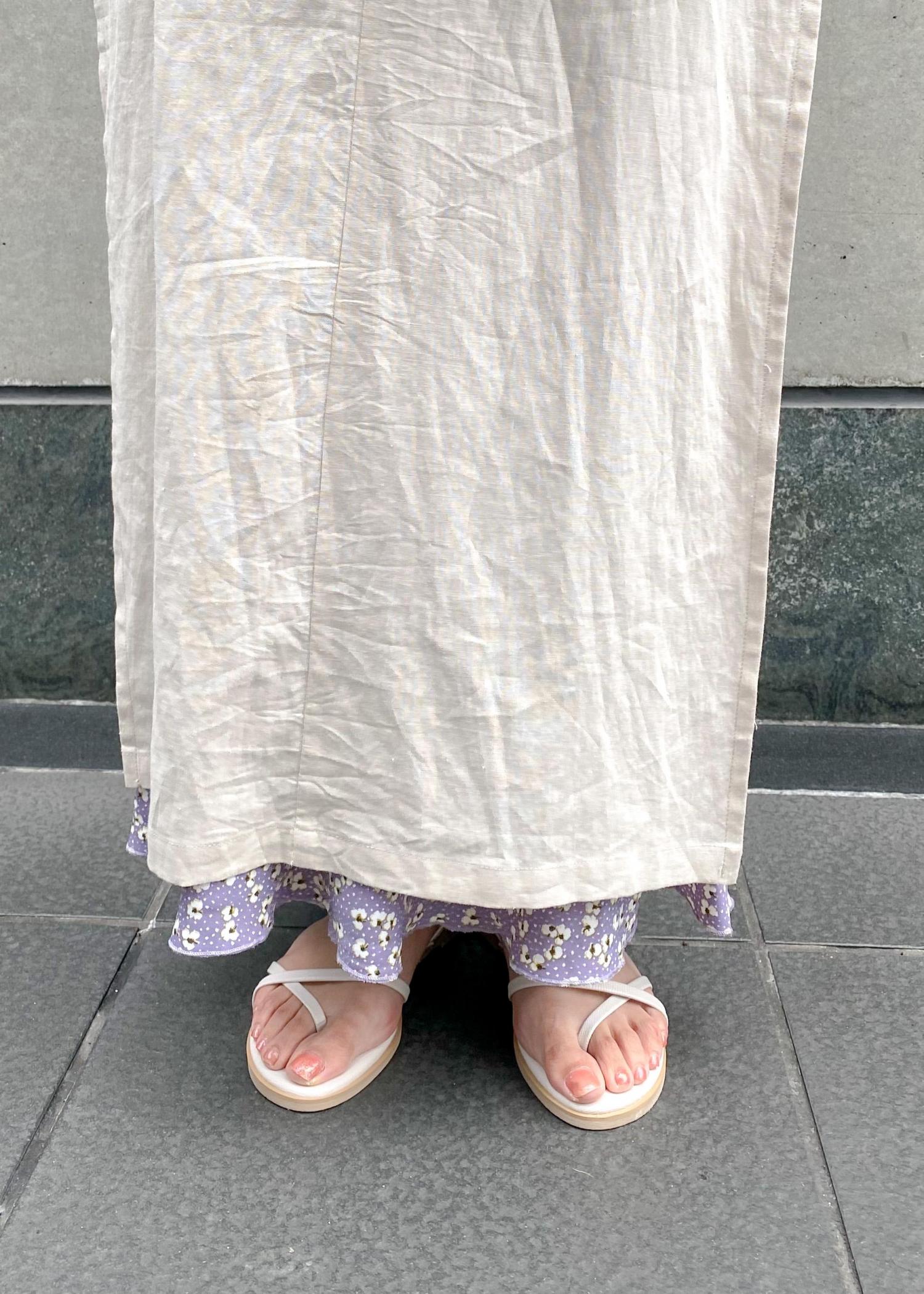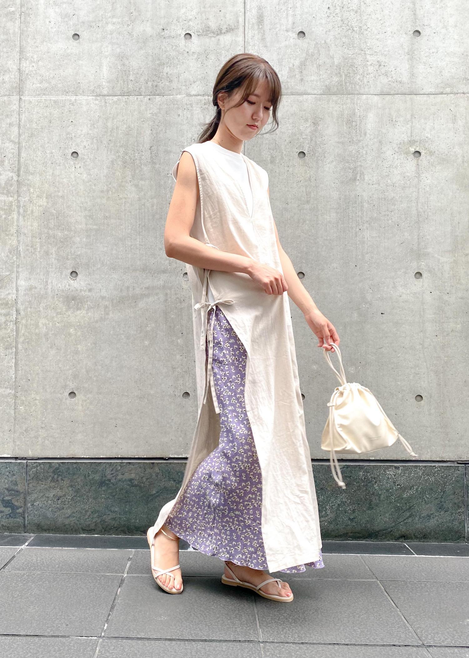 スカートの花柄はラベンダーカラーで大人っぽく上品にまとめてみました!