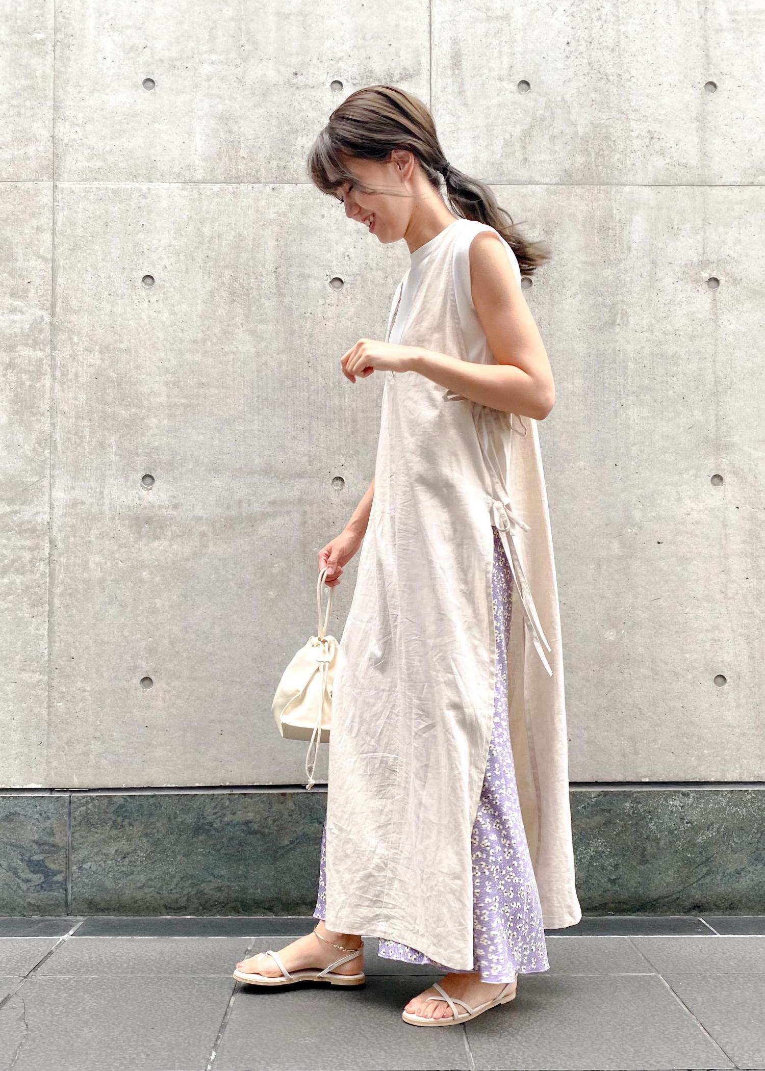 スカートにデザイン性があるので、シンプルなTシャツやシアー素材のトップスと合わせると今年らしく着こなしていただけます◎