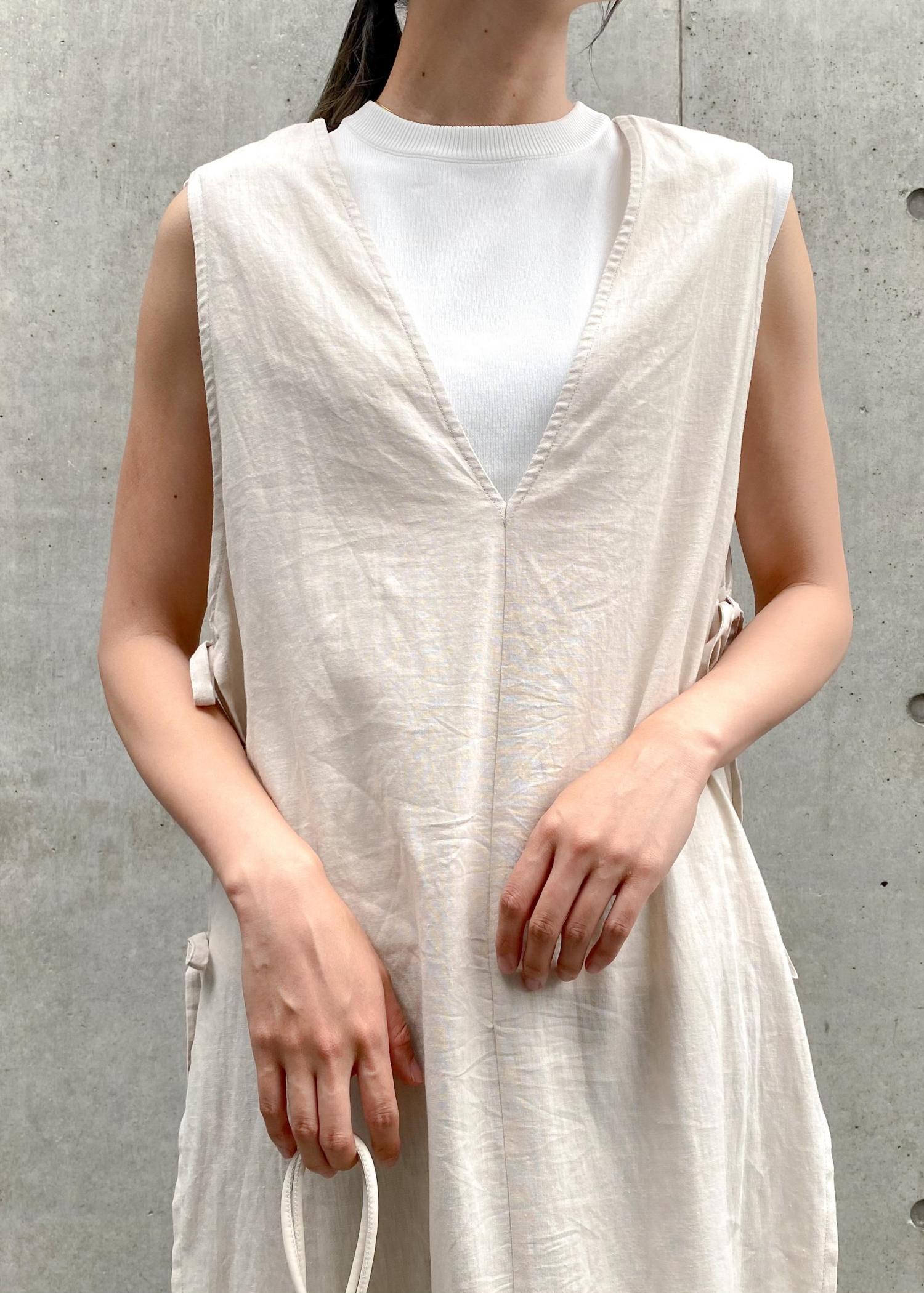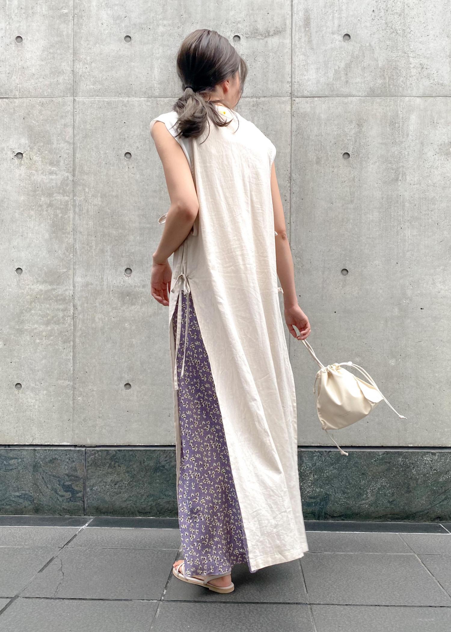 インナーはフレンチスリーブのサマーニットを合わせてヘルシーに。