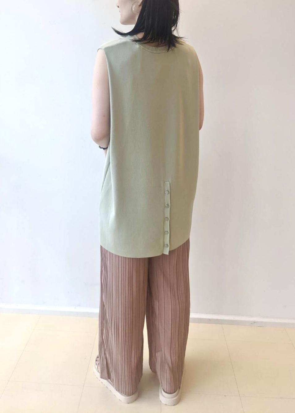 淡いカラー同士で作る、清涼感溢れる大人リラックススタイルです⭐︎ 全体的にぼんやりしないよう、プリーツパンツで生地にメリハリを持たせ、 ゴールドのネックレスとハーフアップヘアで抜け感をプラスしました♩