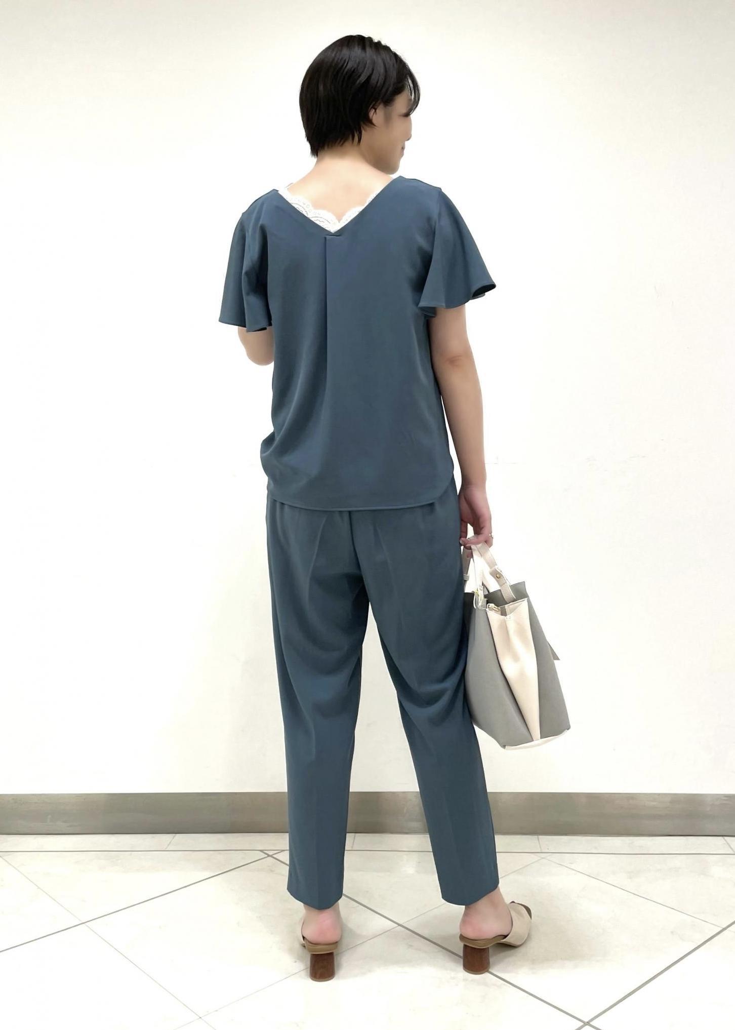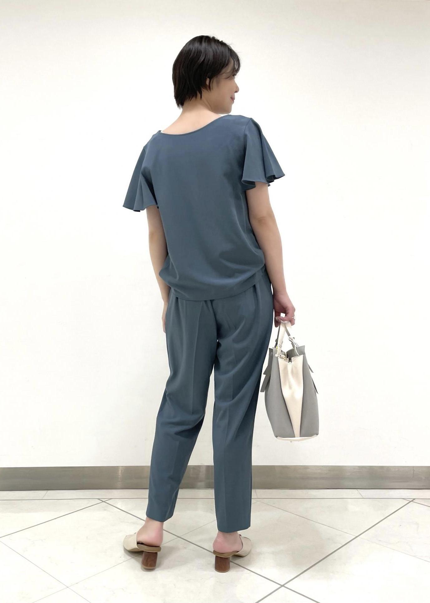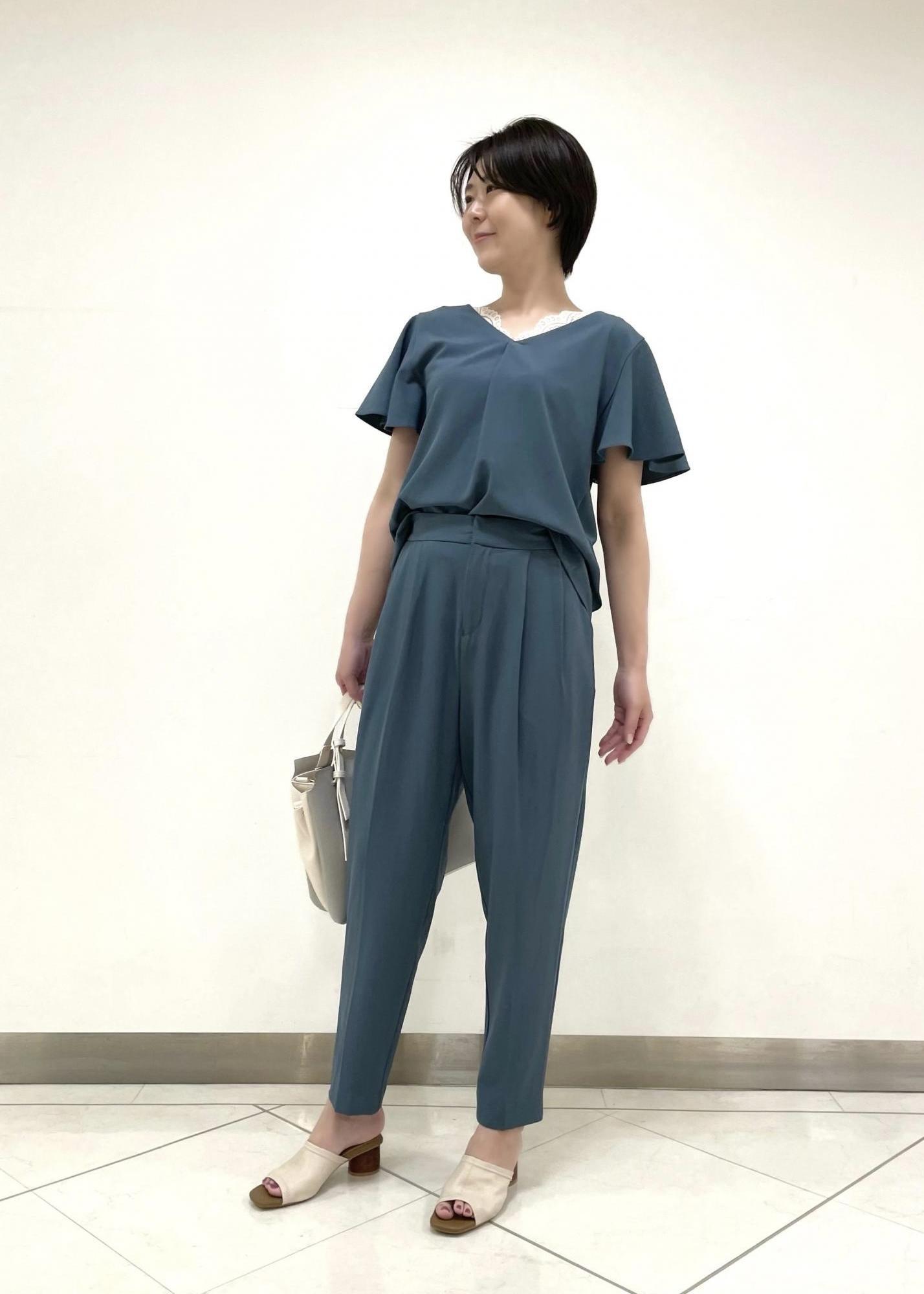 綺麗なモスグリーンのセットアップで綺麗め通勤コーデ