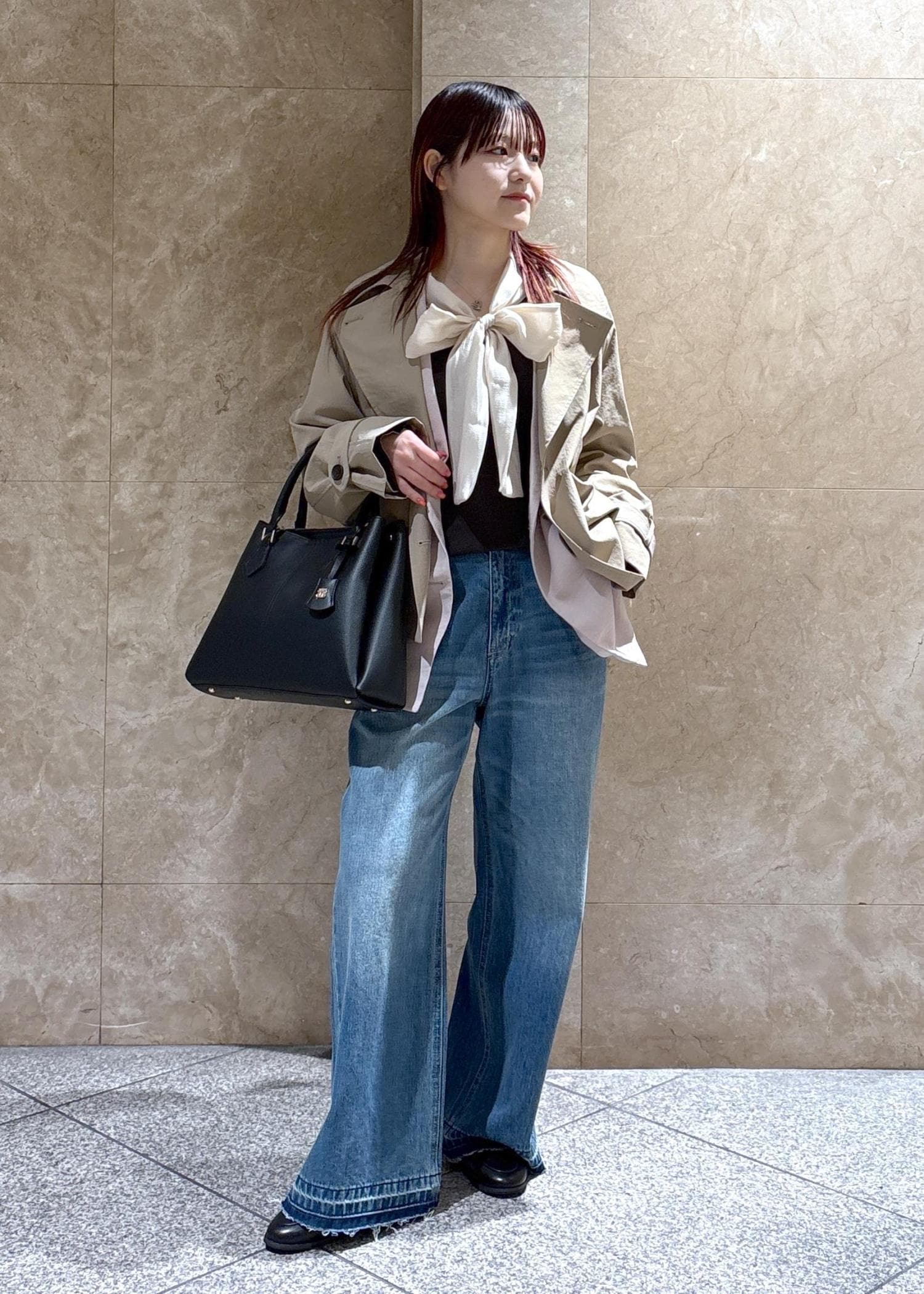 ウエスト周りのラインが綺麗なので、袖ボリュームのトップスと合わせるとメリハリあるシルエットで着用頂けます。
