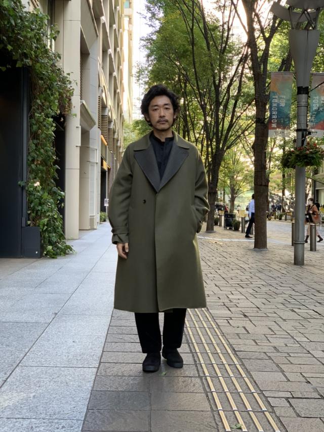 軽やかなダブルフェイスのコートにフラノ地のシャツをあわせ、