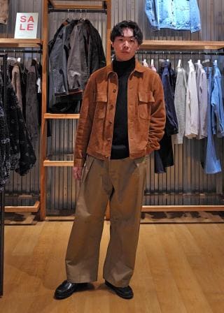 ・一枚続きで表現した作り込みすぎない衿や、ヴィンテージらしい胸ポケットのバランスと、フラップのボタンを廃することにより、シャツ感覚で羽織れるデザインに落とし込んでいます。