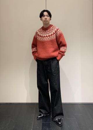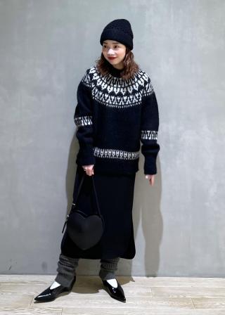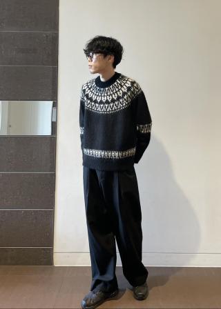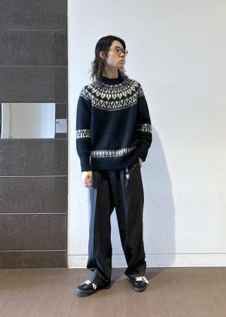 しっかりとした太めのリブと美しいノルディック柄。23AWは2色使いのシンプルながら上品な佇まいです。