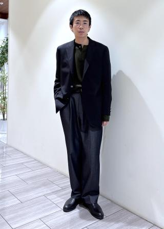 袖山をあえて低めに設定し、全体的にかしこまり過ぎないスウェットの様な少しゆとりのあるシルエットにしています。