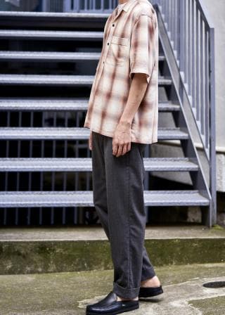 【WILD LIFE TAILOR】ドレープチェック ハーフスリーブ オープンカラー シャツ