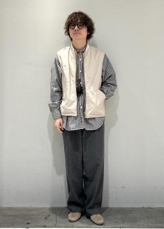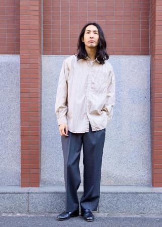 ドレスシャツにある様なタイトシルエットではなく、ボクシーで現代的なゆとりあるサイズ感と、ワーク仕立てと製品洗いによる独特のふんわりとしたシルエットが特徴です。