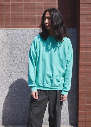 ヴィンテージスウェットの着古して裏糸が抜けたような透け感と、コシの抜けた柔らかな肌触りを再現しています。